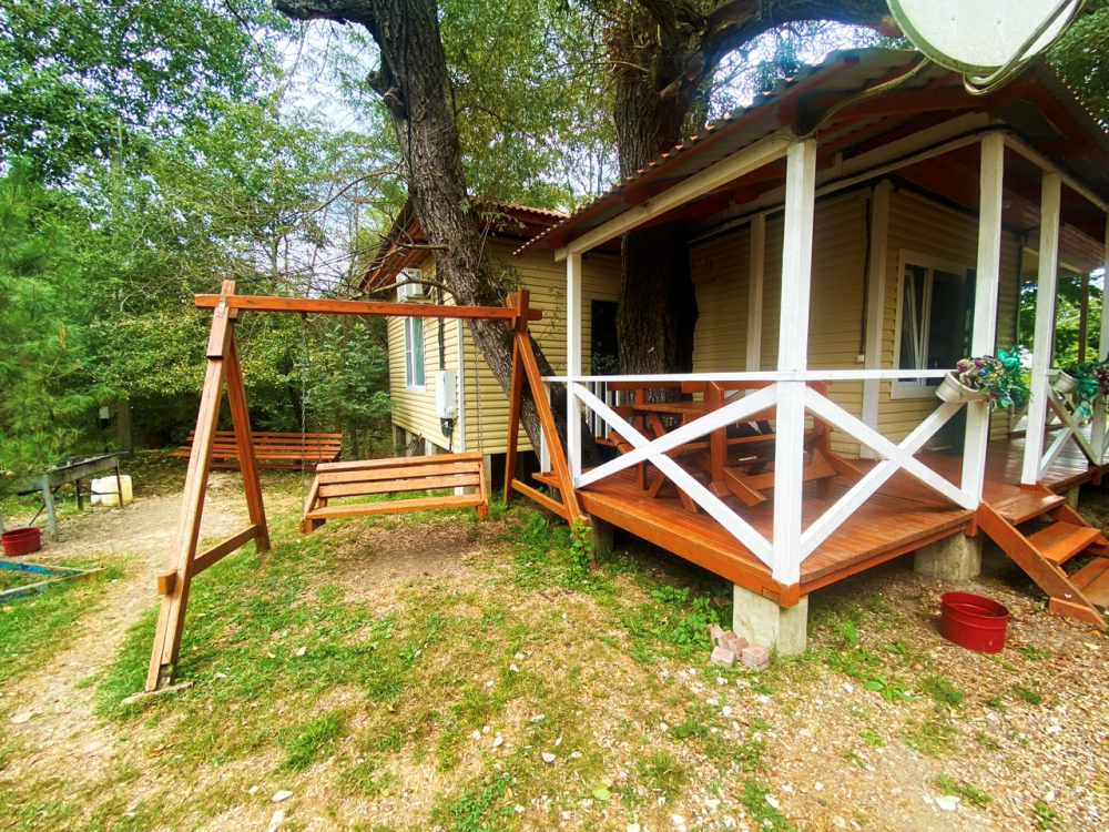 У номера есть собственная небольшая уютная веранда. Рядом расположены качели, мангальная зона для приготовления еды и просторная поляна, подходящая для активных игр, например футбола.