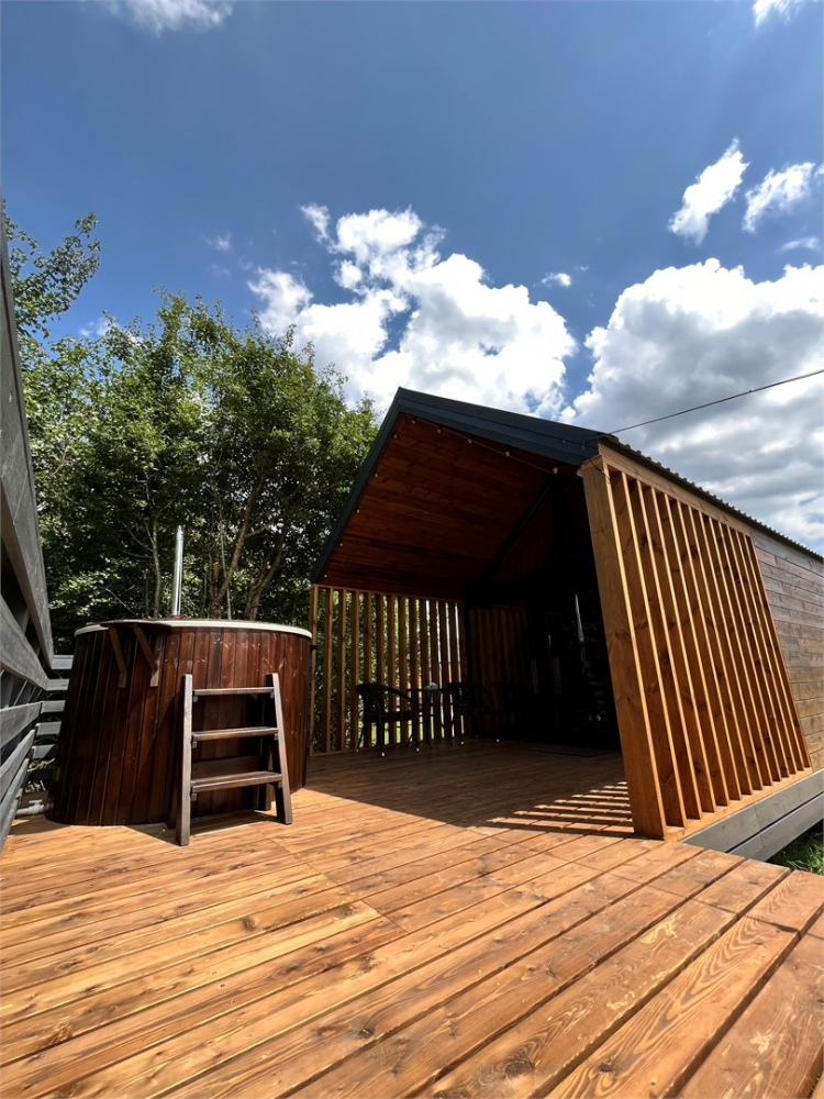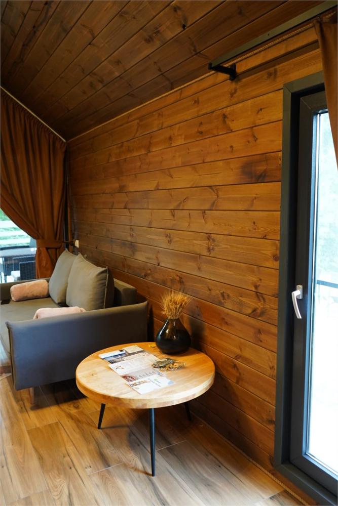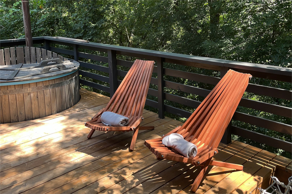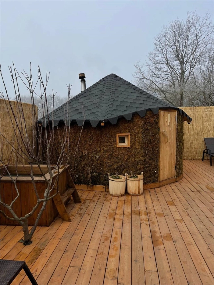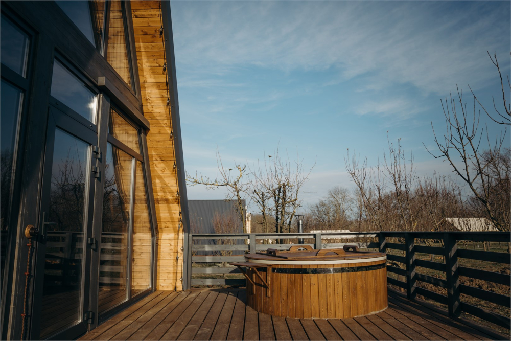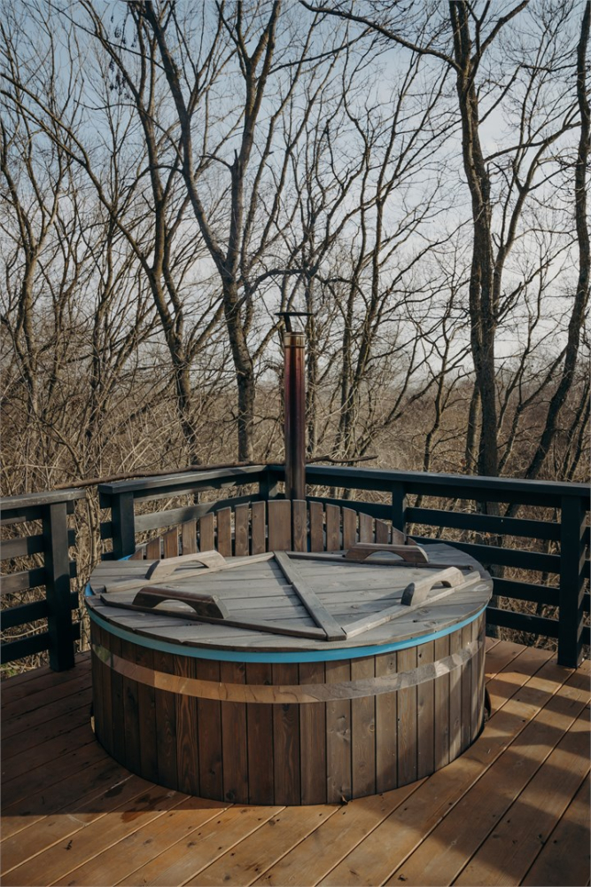 Уникальная особенность комплекса — персональная бочка фурако на террасе каждого дома. Подготовка и растопка входят в стоимость проживания.