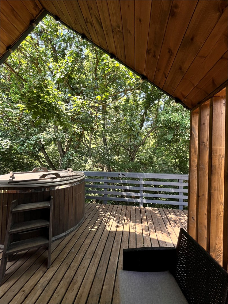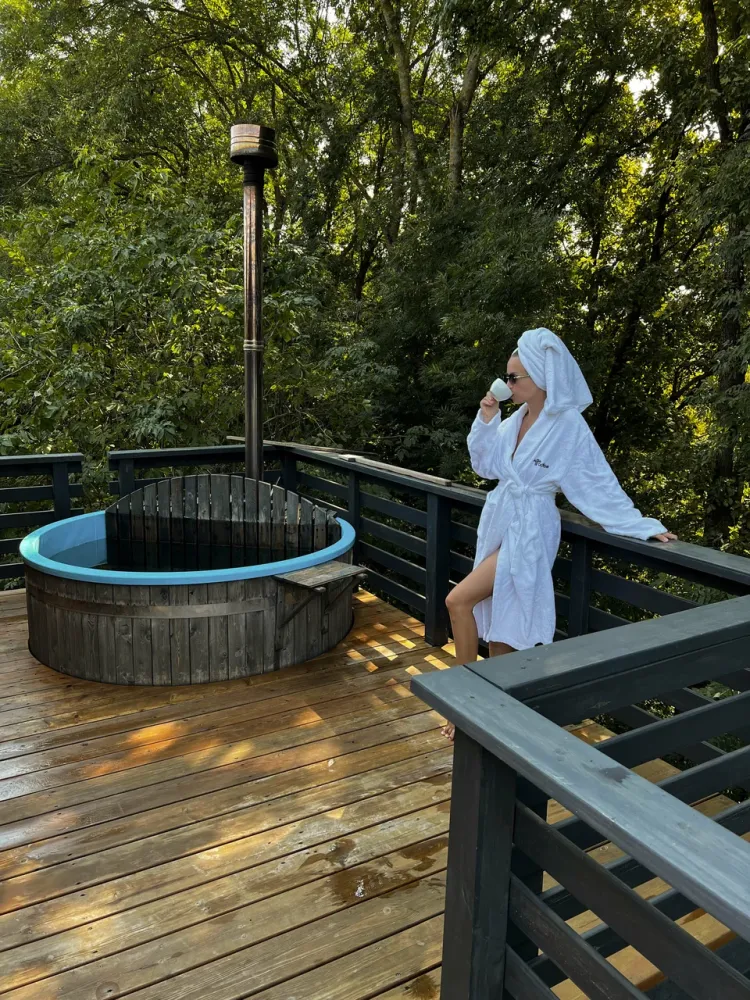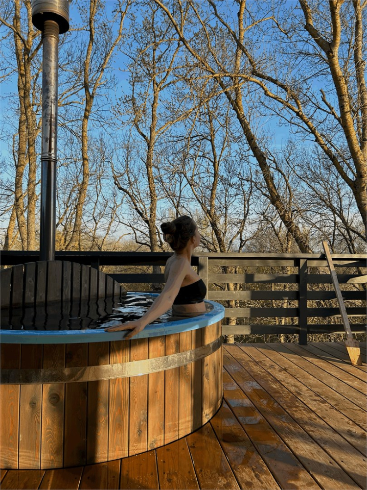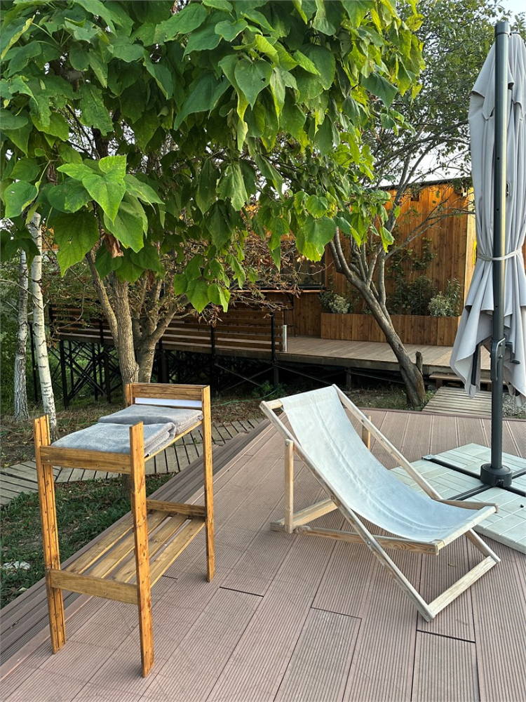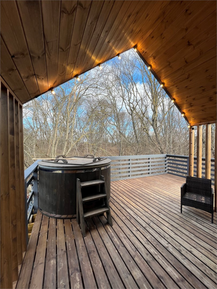 Уникальная особенность комплекса — персональная бочка фурако на террасе каждого дома. Подготовка и растопка входят в стоимость проживания.