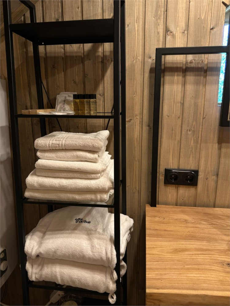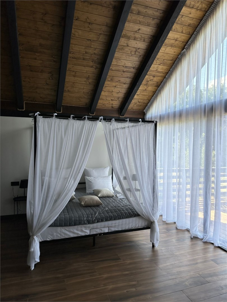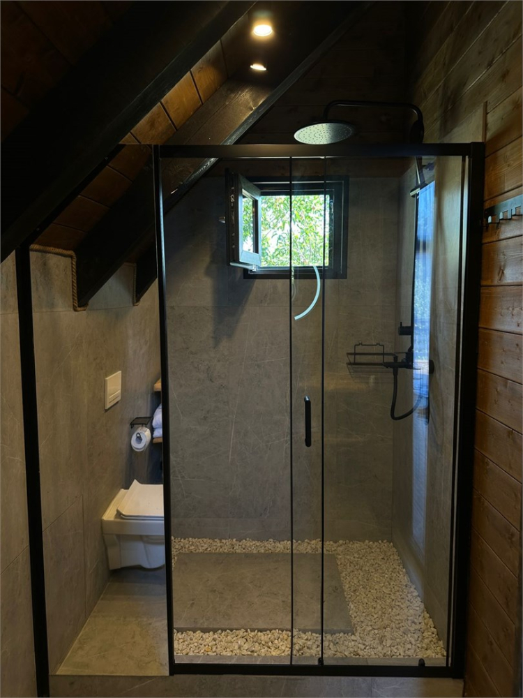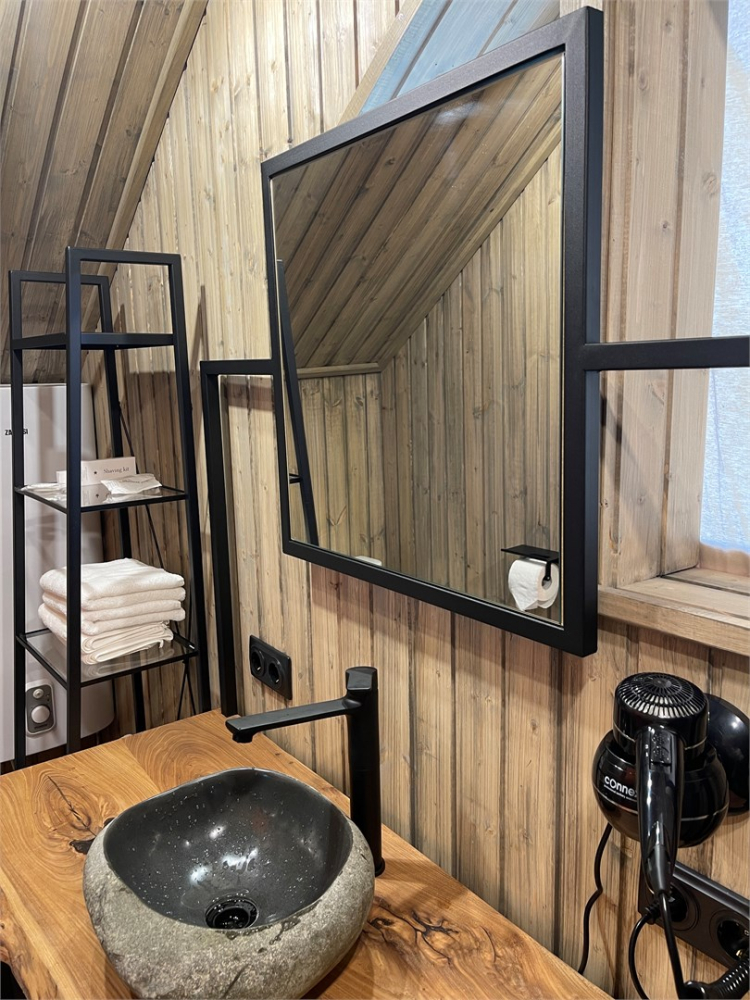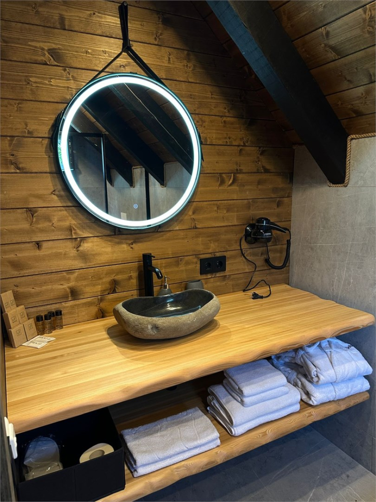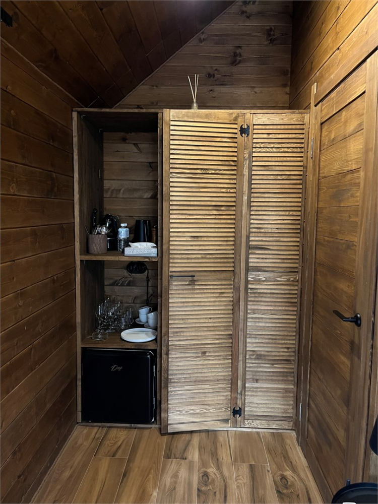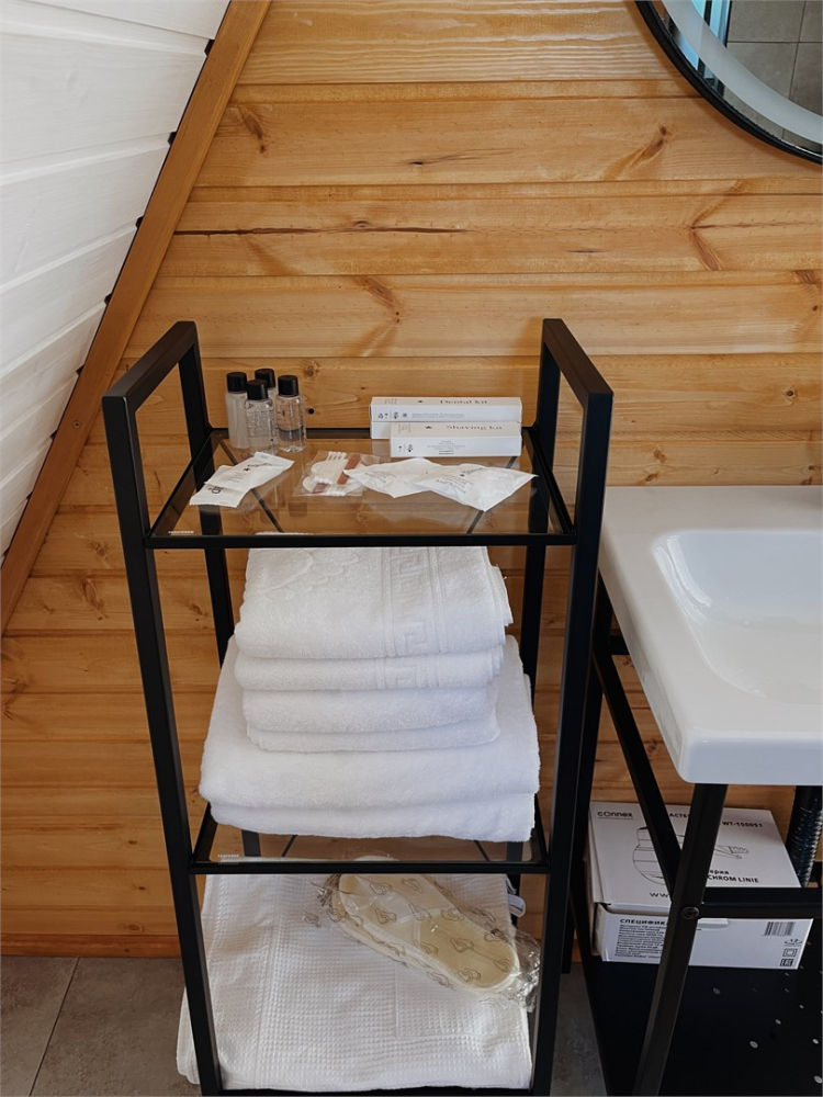 японская бочка фурако и гамак на террасе, два шезлонга и зонт от солнца, BQ-зона, индивидуальная костровая зона, раскладной диван и кресло, детская кроватка по запросу, двуспальная кровать, ванная с панорамным видом, уютный камин, TV, Wi-Fi, холодильник, чайник, капсульная кофемашина, набор посуды, приборы, бокалы, санузел с душевой, халат/ тапочки/ полотенца, косметические наборы, зонты, в случае дождливой погоды, отопление (теплый пол, кондиционер, обогрев на кровати)