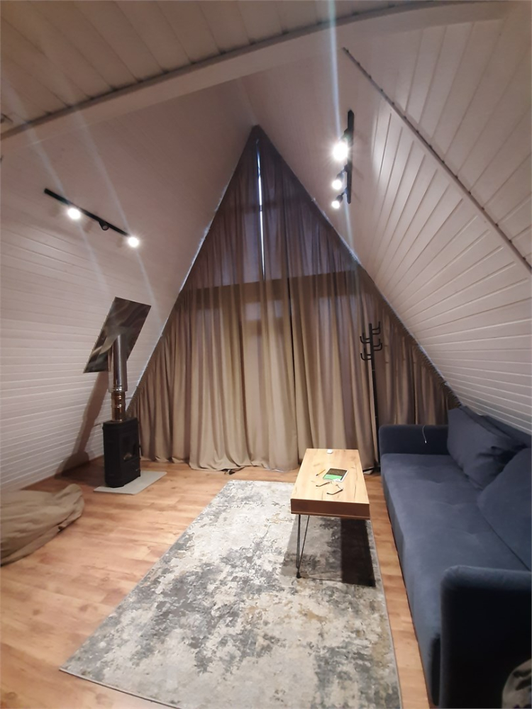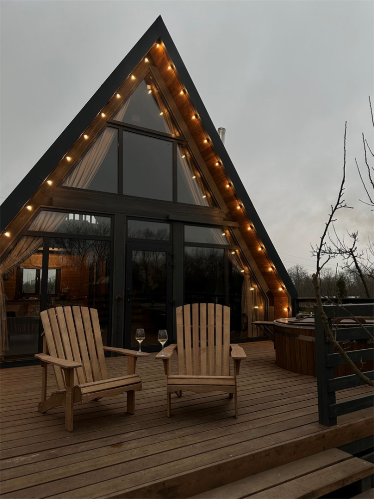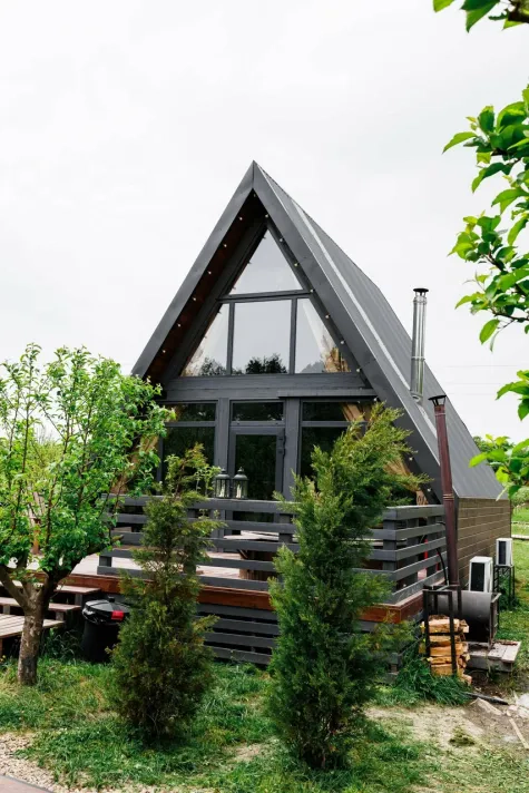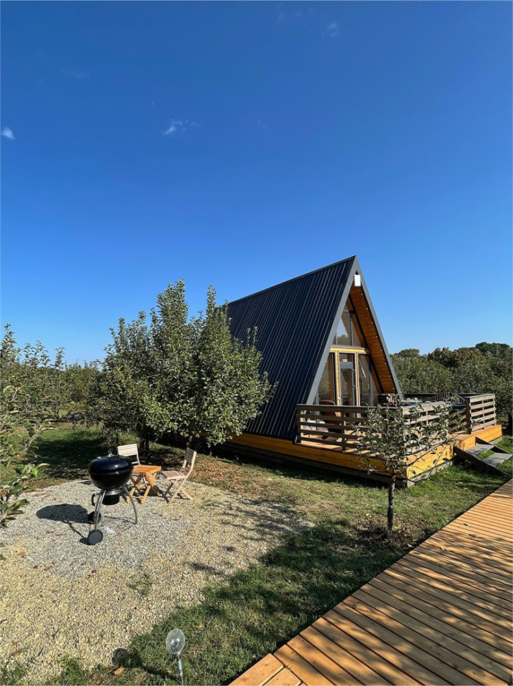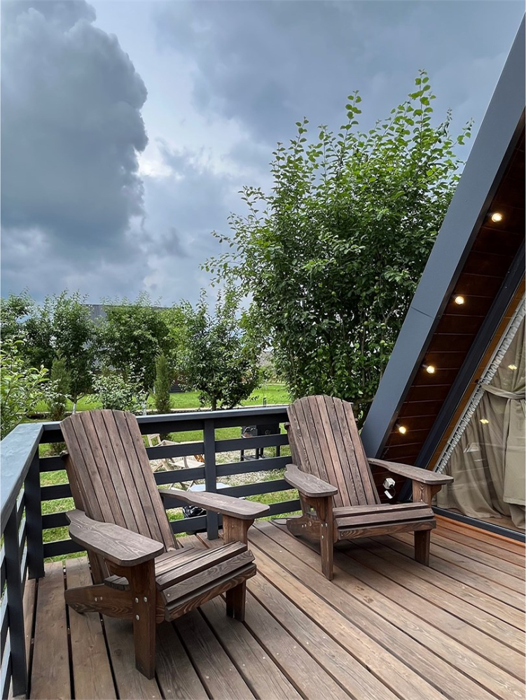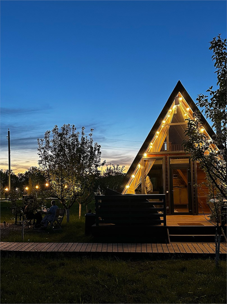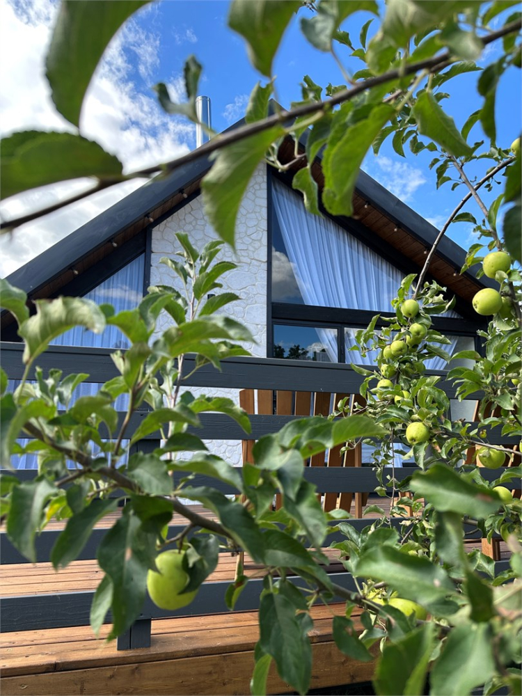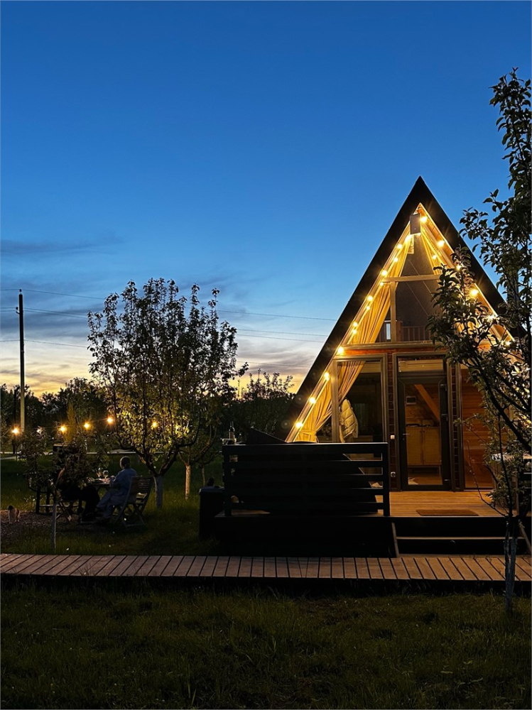 Бесспорный фаворит наших гостей. Двухуровневый уютный дом среди яблоневого сада, который вмещает в себя максимум 4 человека. Стиль, атмосфера и комфорт - слова, описывающие полностью A-frame.