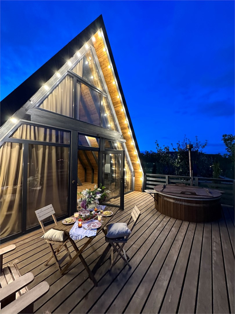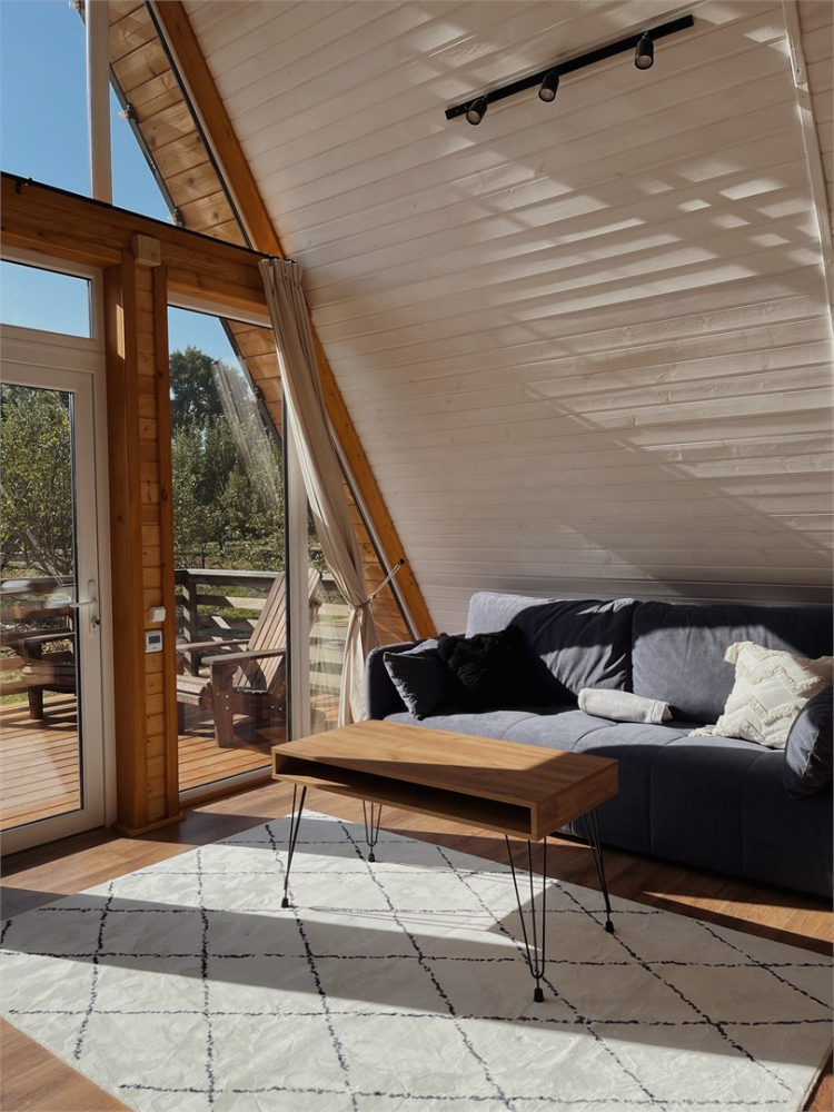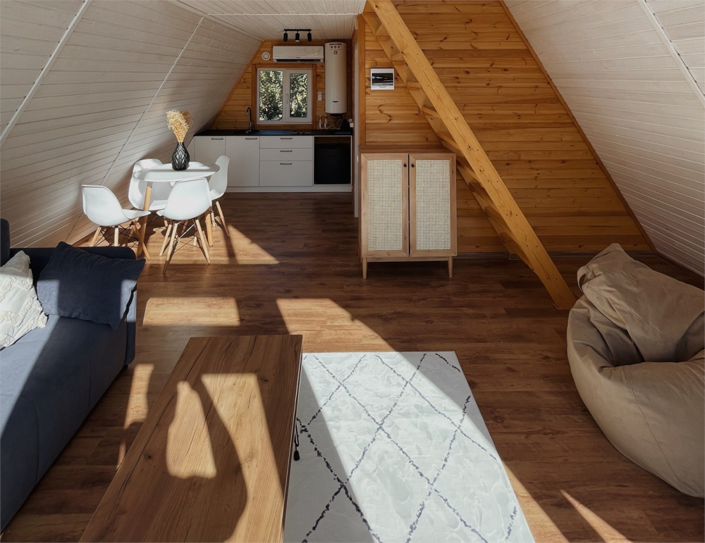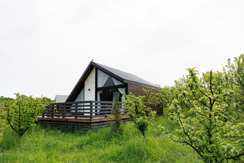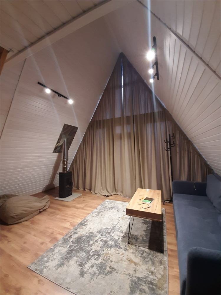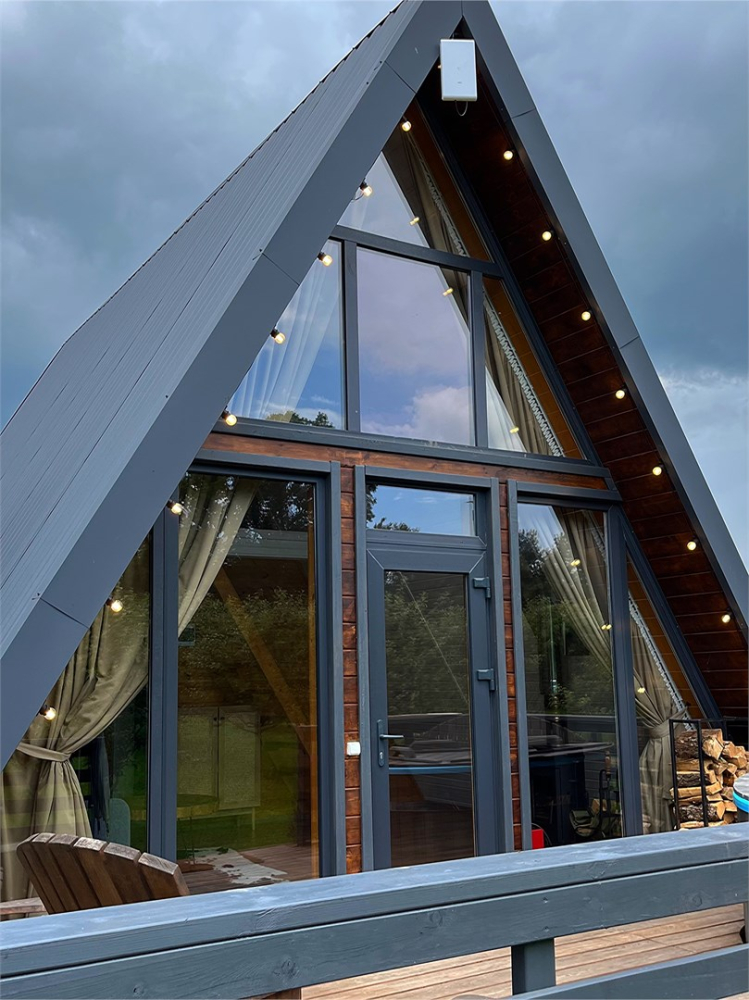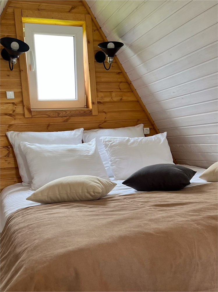 Бесспорный фаворит наших гостей. Двухуровневый уютный дом среди яблоневого сада, который вмещает в себя максимум 4 человека. Стиль, атмосфера и комфорт - слова, описывающие полностью A-frame.