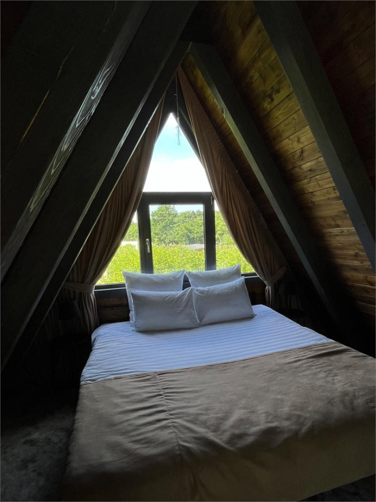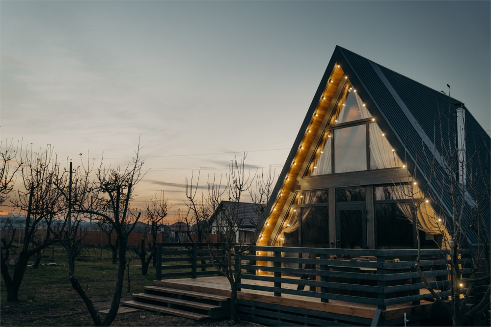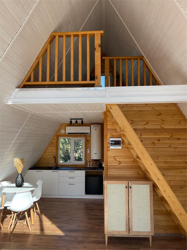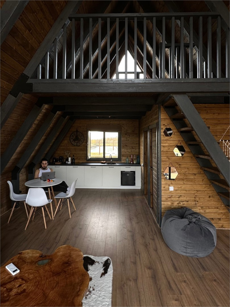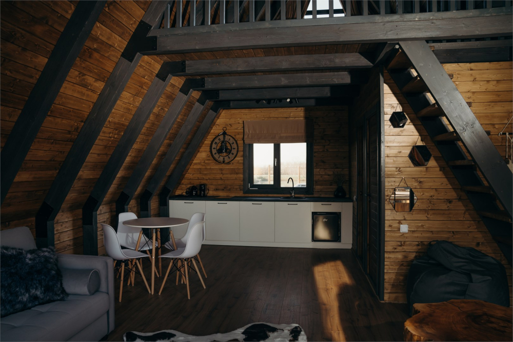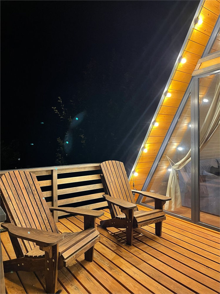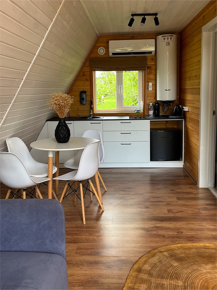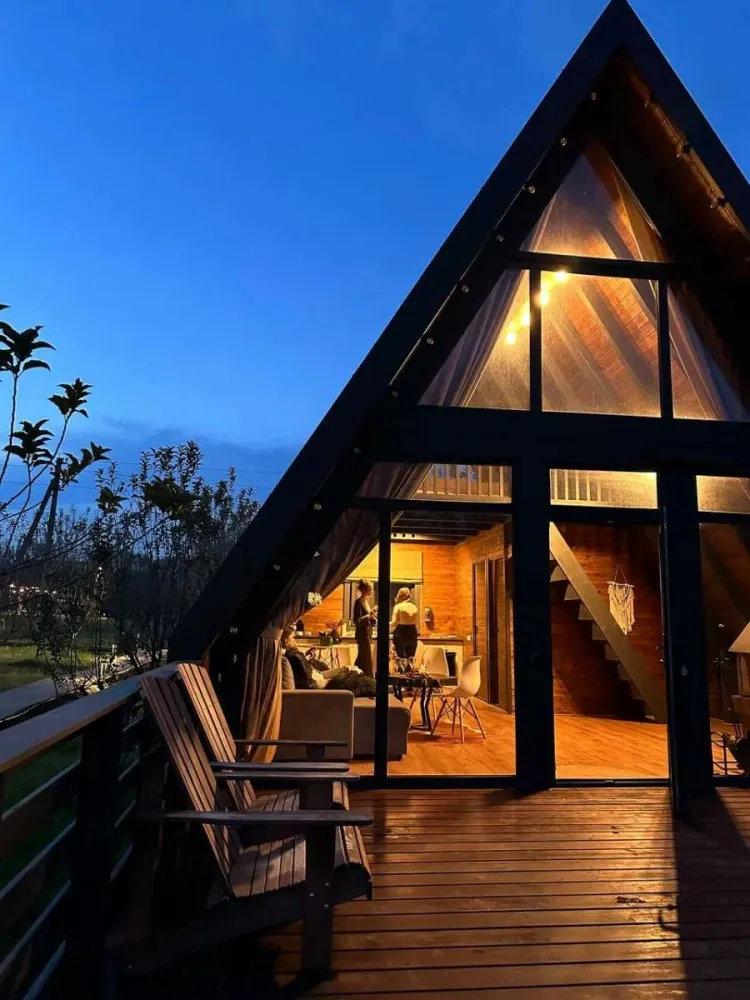 Бесспорный фаворит наших гостей. Двухуровневый уютный дом среди яблоневого сада, который вмещает в себя максимум 4 человека. Стиль, атмосфера и комфорт - слова, описывающие полностью A-frame.