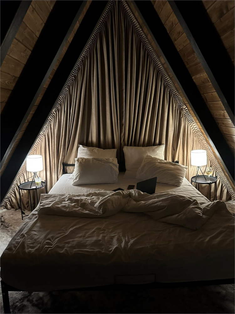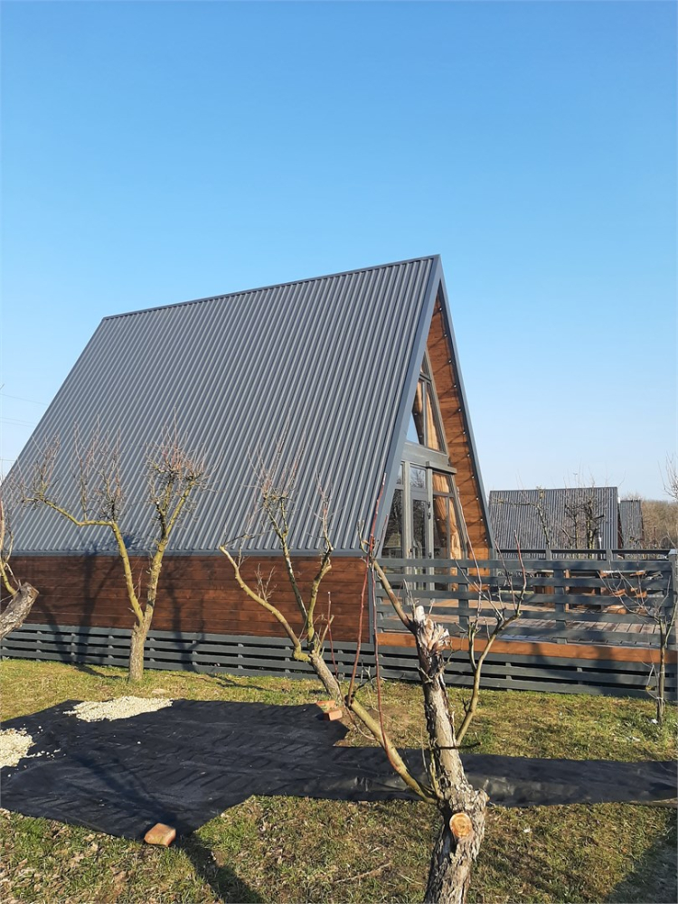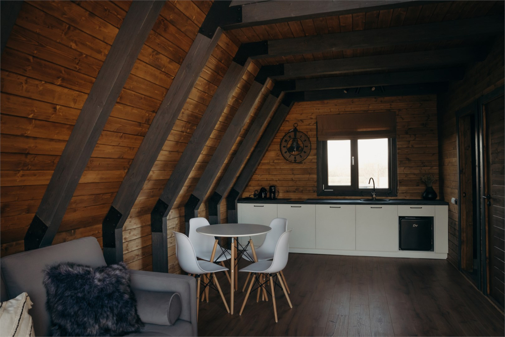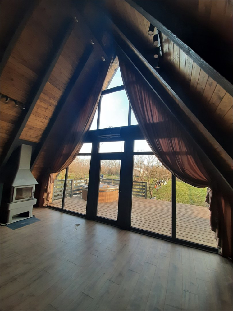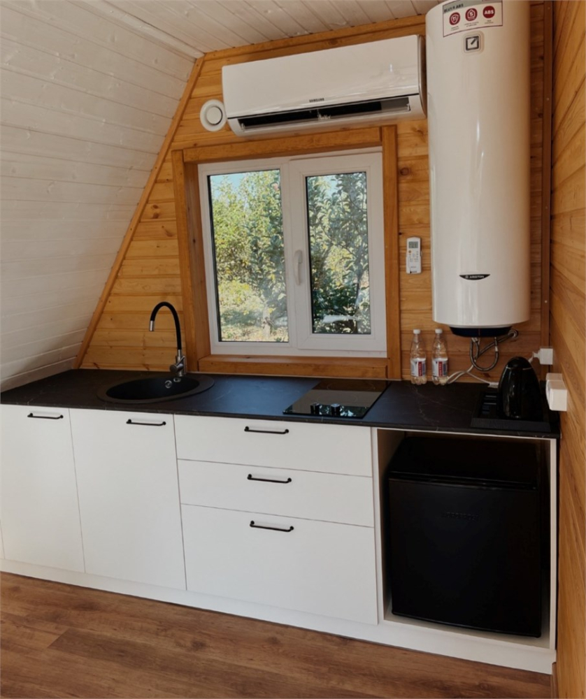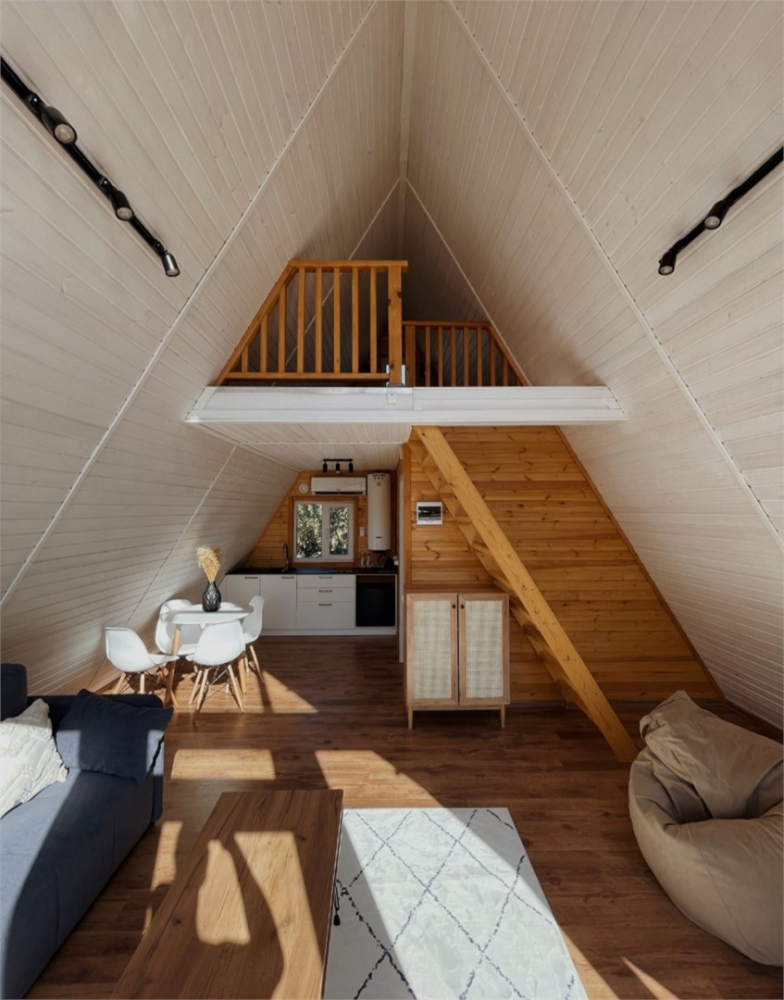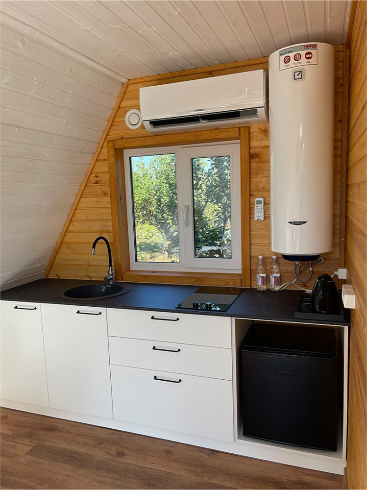 Бесспорный фаворит наших гостей. Двухуровневый уютный дом среди яблоневого сада, который вмещает в себя максимум 4 человека. Стиль, атмосфера и комфорт - слова, описывающие полностью A-frame.