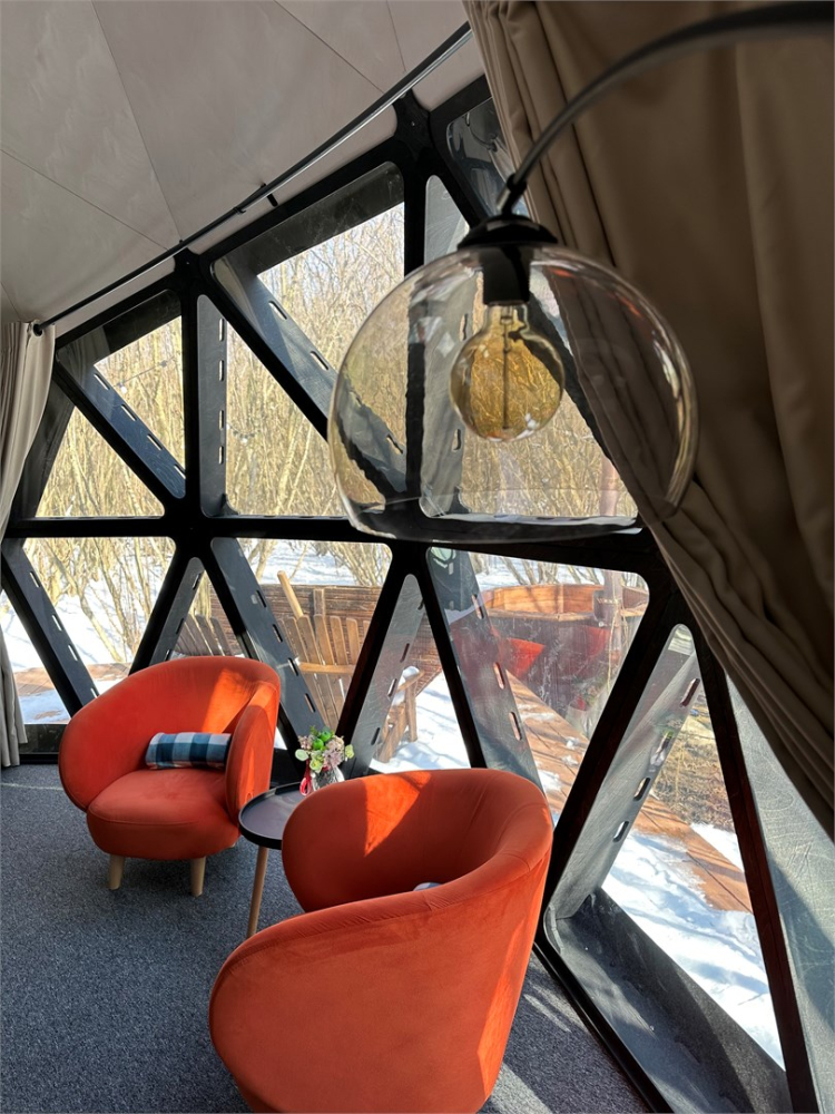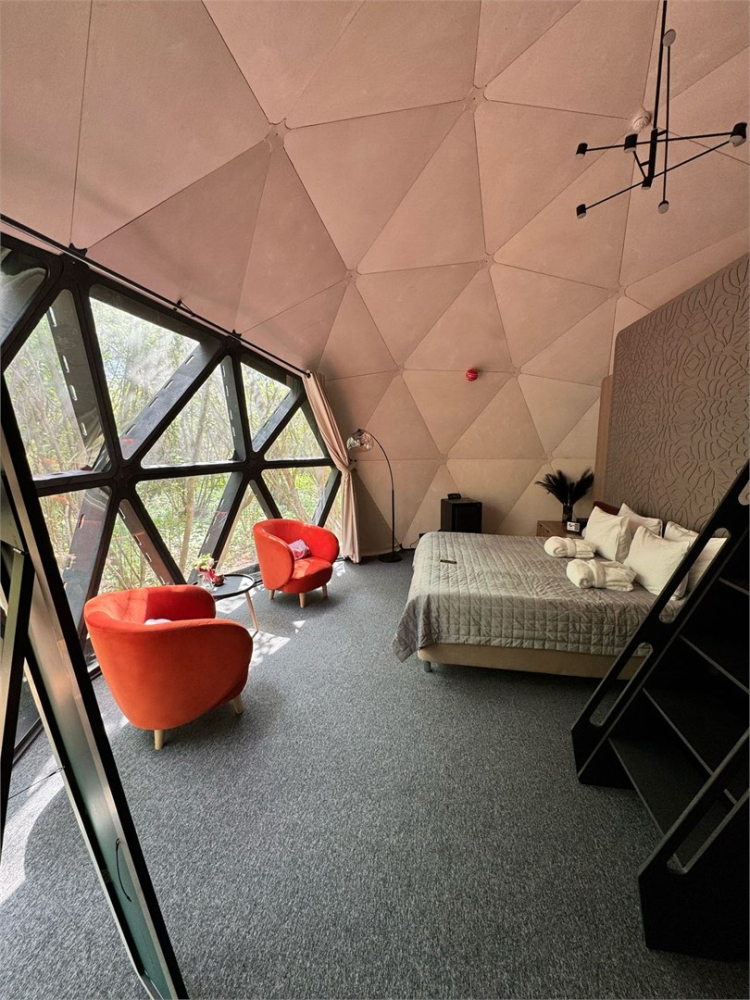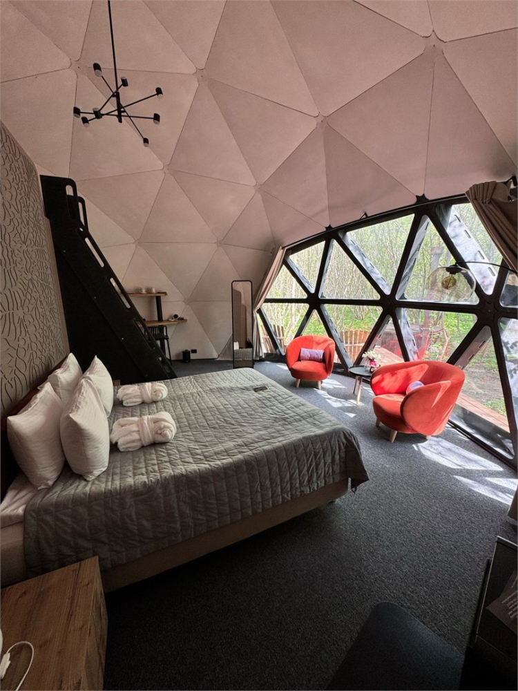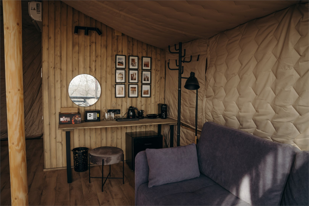 Уютный дом в стиле глэмпинга перевернет ваше представление о палаточных домах. Тут вы найдете все необходимое для комфортного проживания, как 2-х гостей, так и 4-х.