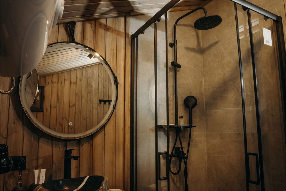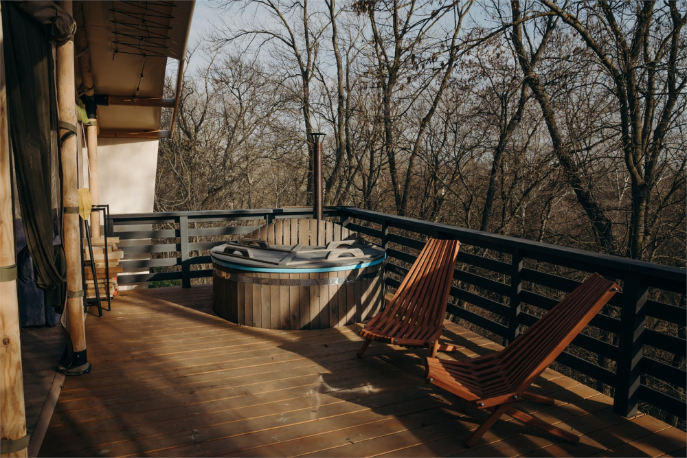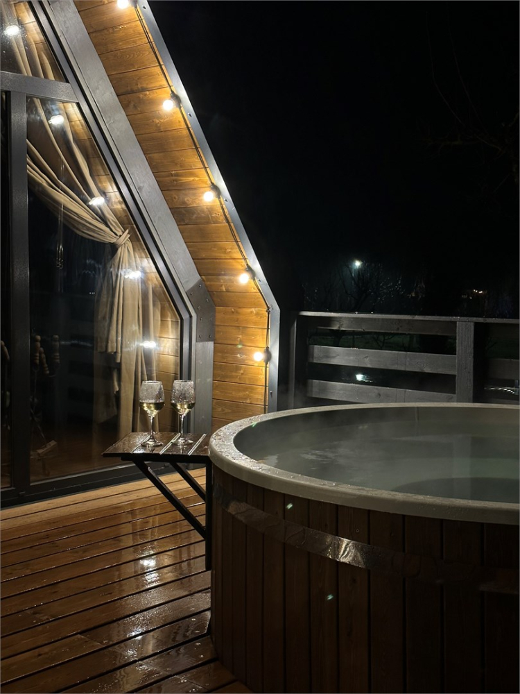 Уникальность глэмпинга заключается в том, что у каждого дома есть своя индивидуальная бочка фурако, которая подготавливается и топится нашими сотрудниками и включена в стоимость проживания. Дополнительно фурако можно украсить цитрусами, травами, цветами или пихтой. Находятся около домика.