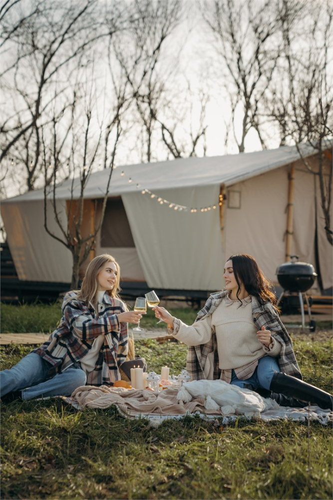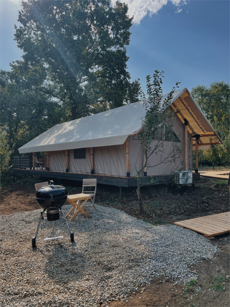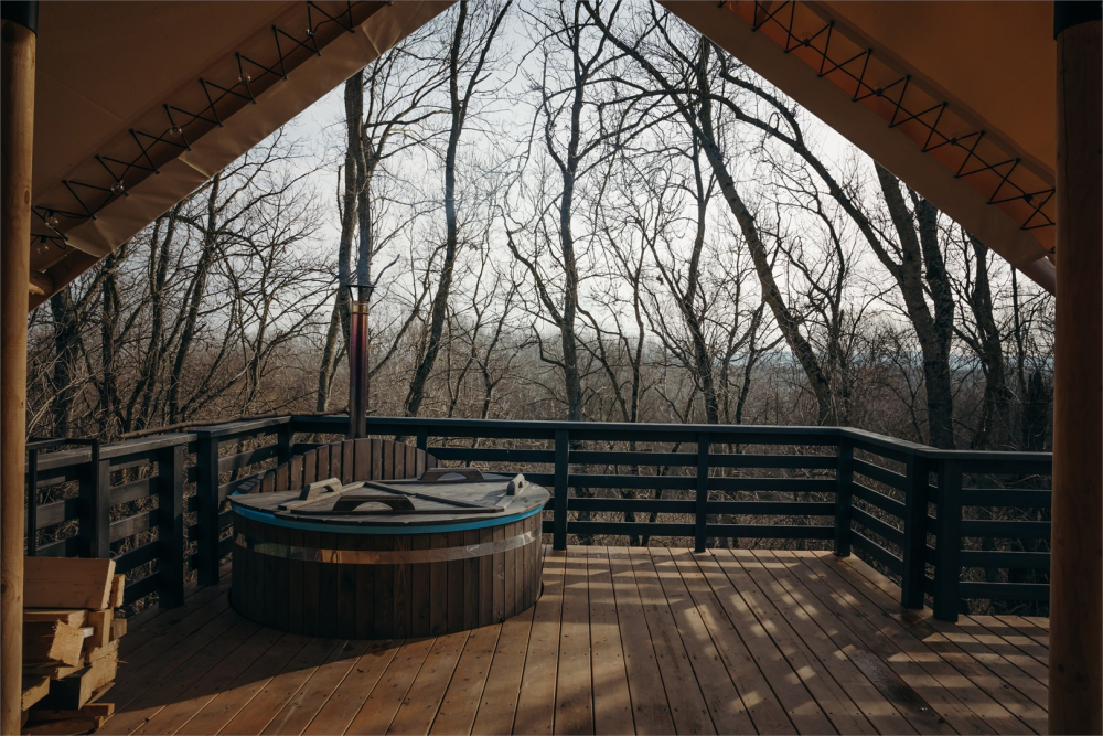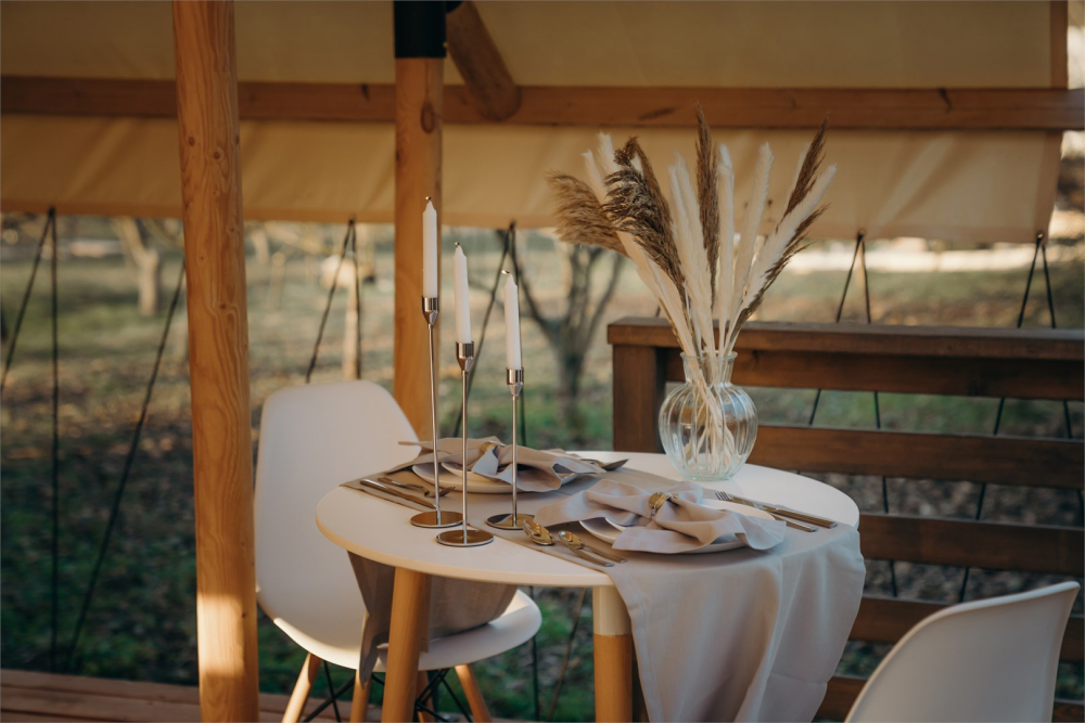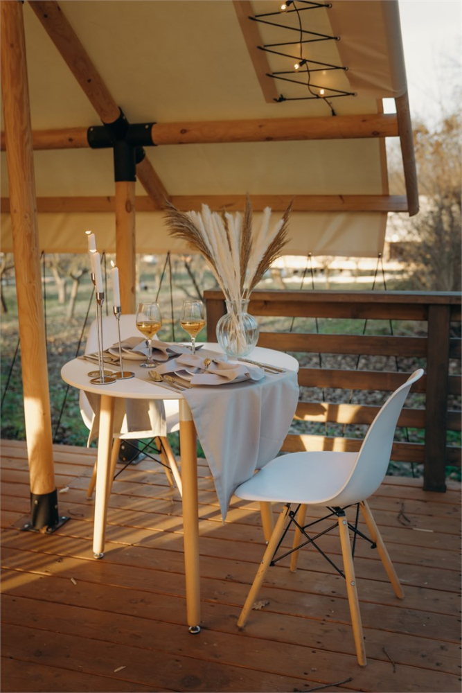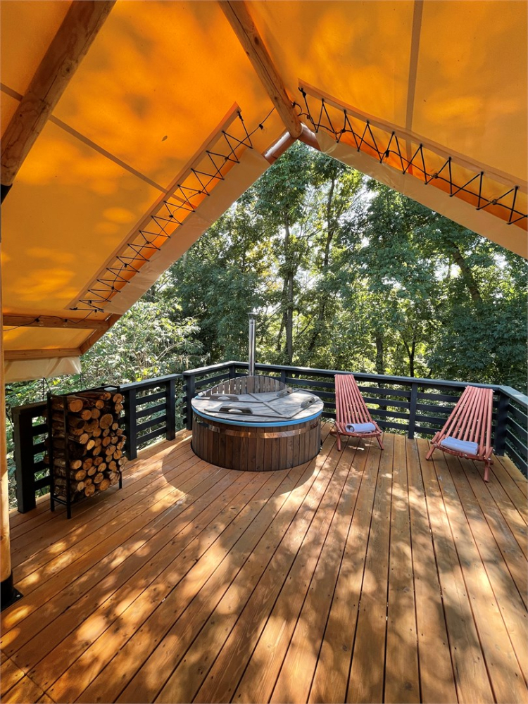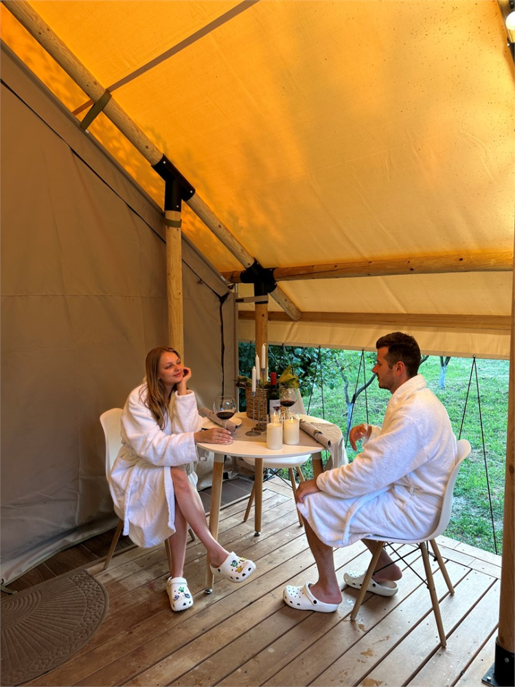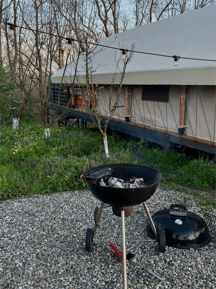Идеальный и стильный тент для двоих! В дождливые дни у гостей этого тента есть преимущество – крыша над террасой, где вы сможете наслаждаться шумом дождя и свежестью природы. А при хорошей погоде вы можете расслабиться в собственной фурако или приготовить ужин на BQ-зоне около домика. Максимальная вместимость: 3 человека.