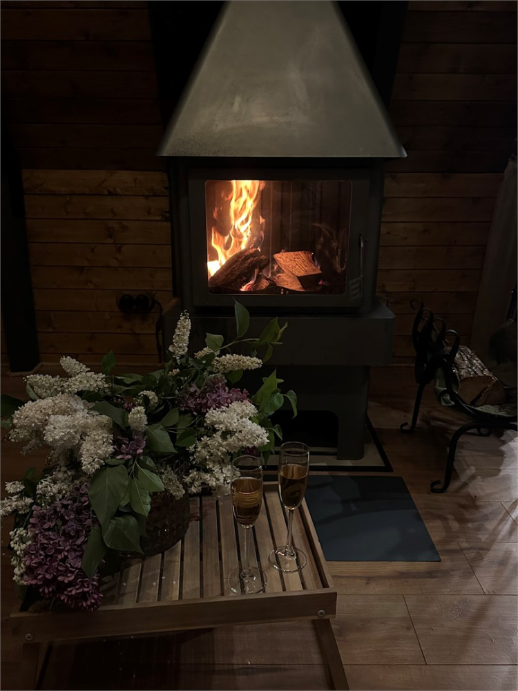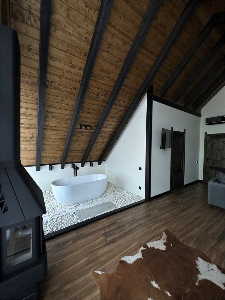 японская бочка фурако на террасе, два шезлонга и зонт от солнца, BQ-зона, раскладной диван, детская кроватка по запросу, двуспальная кровать, уютный камин, Wi-Fi, холодильник, чайник, капсульная кофемашина, набор посуды, приборы, бокалы, санузел с душевой, халат/ тапочки/ полотенца, косметические наборы, зонты, в случае дождливой погоды, отопление (теплый пол, кондиционер, обогрев на кровати)