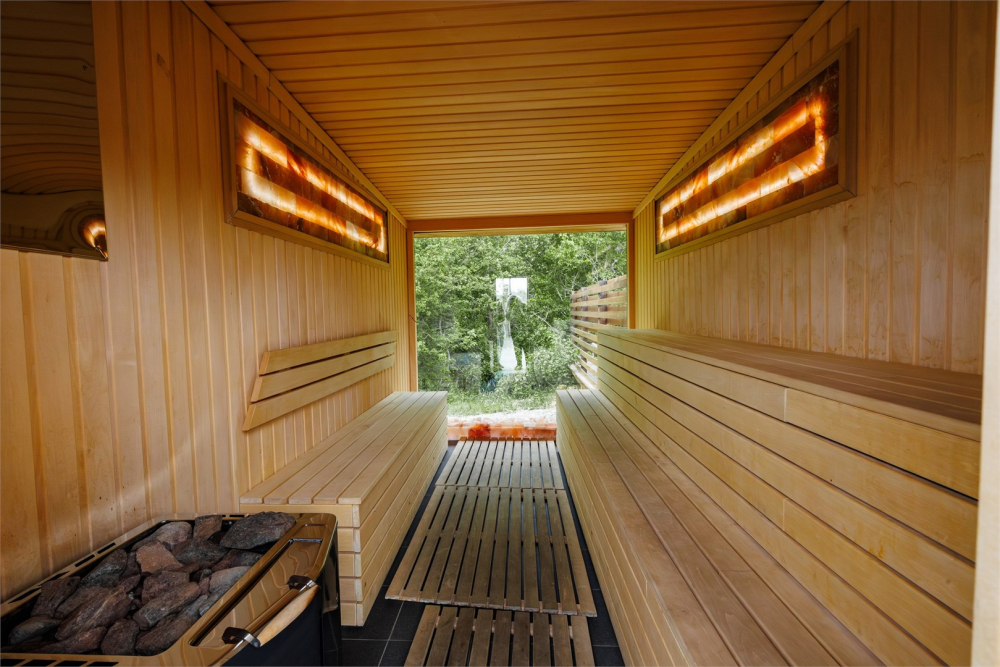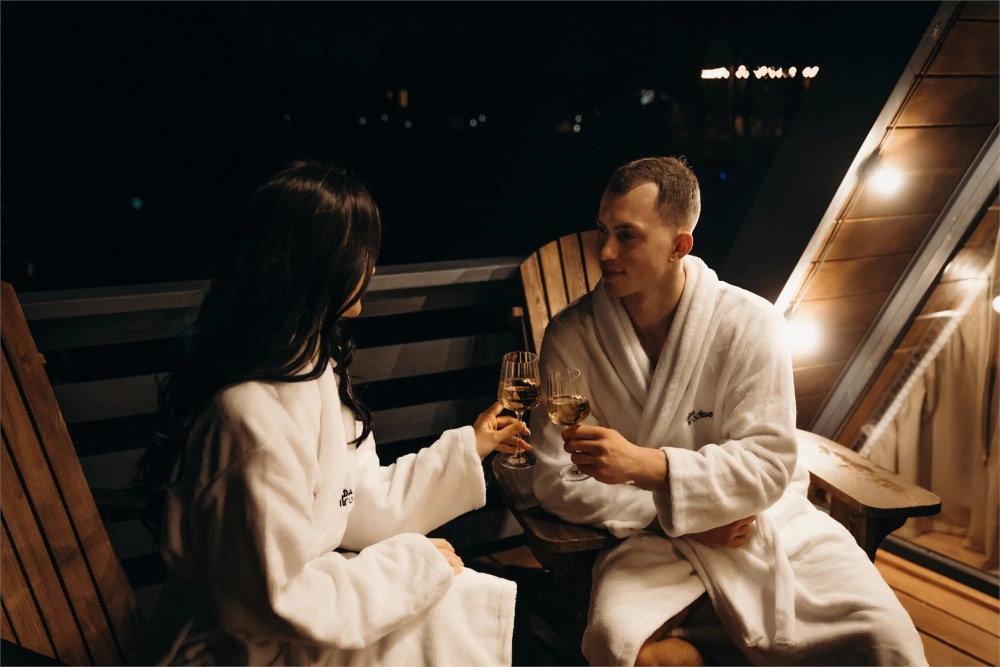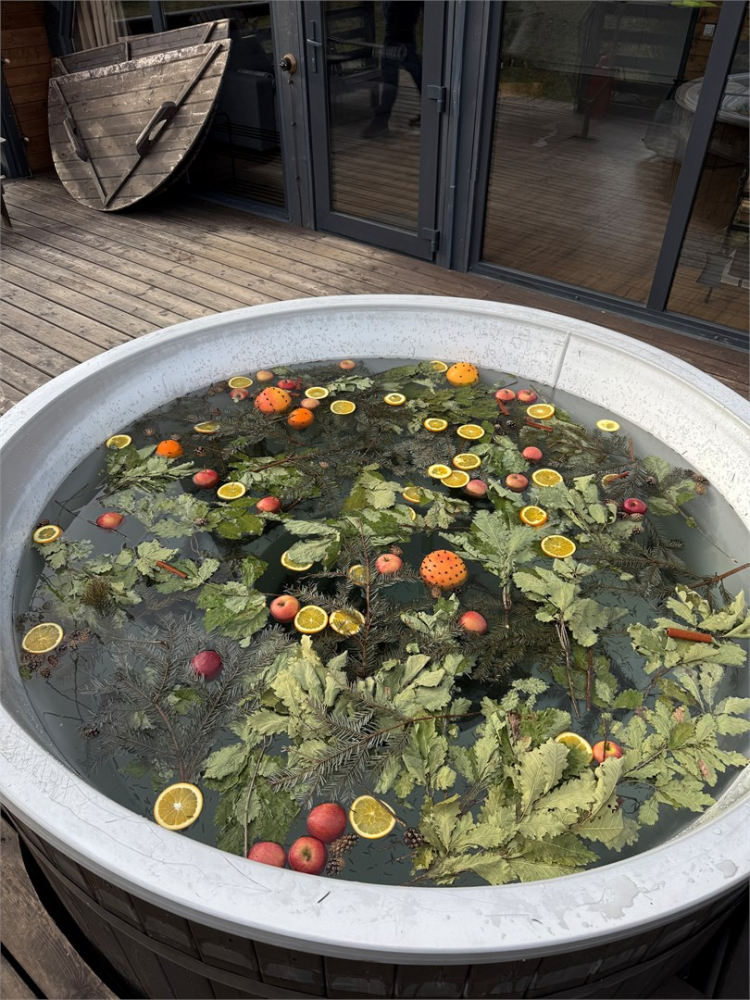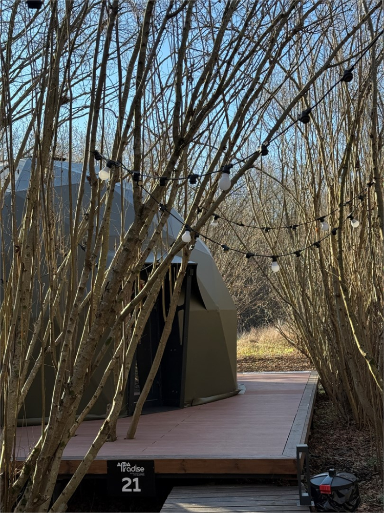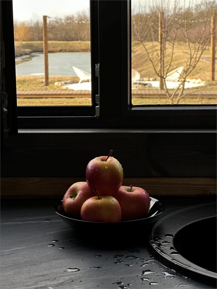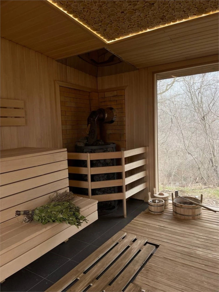 В самом сердце яблоневого сада расположился большой СПА-комплекс, который включен в проживание. Гостям глэмпинга доступны: русская баня, альпийская сауна, бассейны, джакузи с гидромассажем и зона отдыха у камина с детокс-напитками и медом.