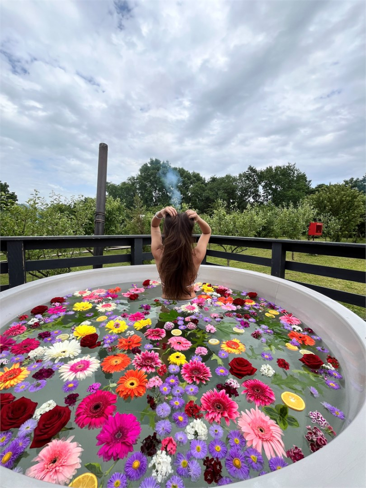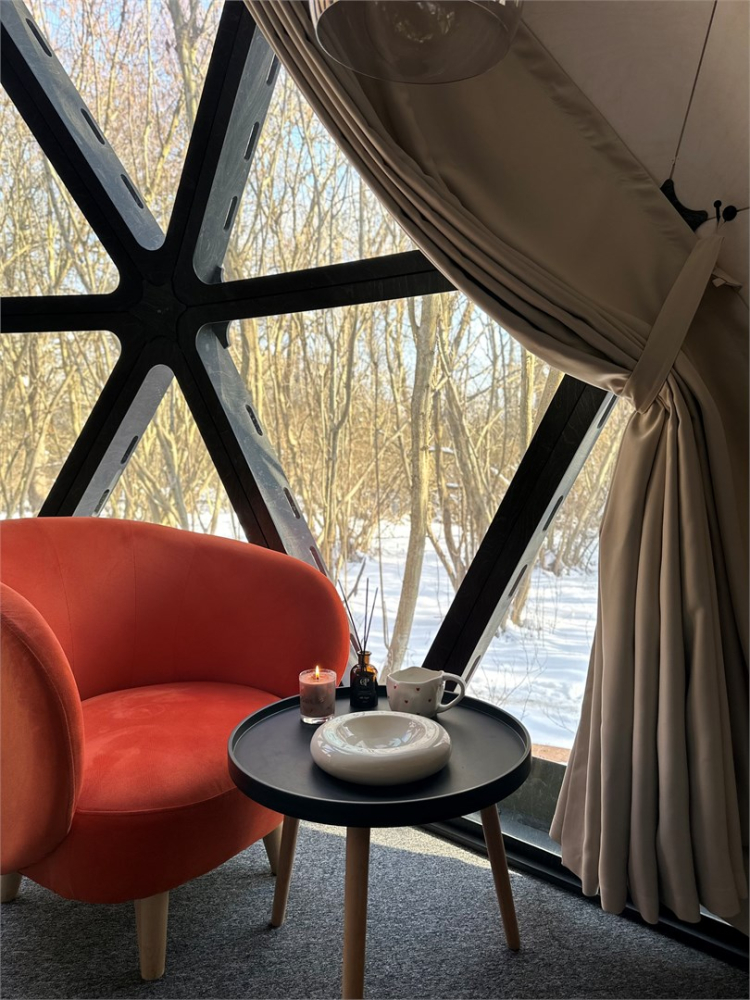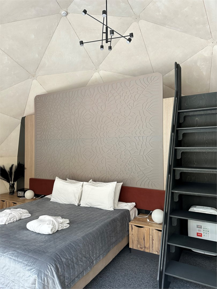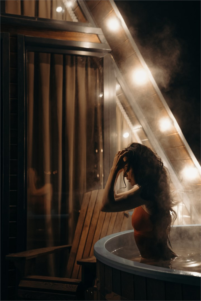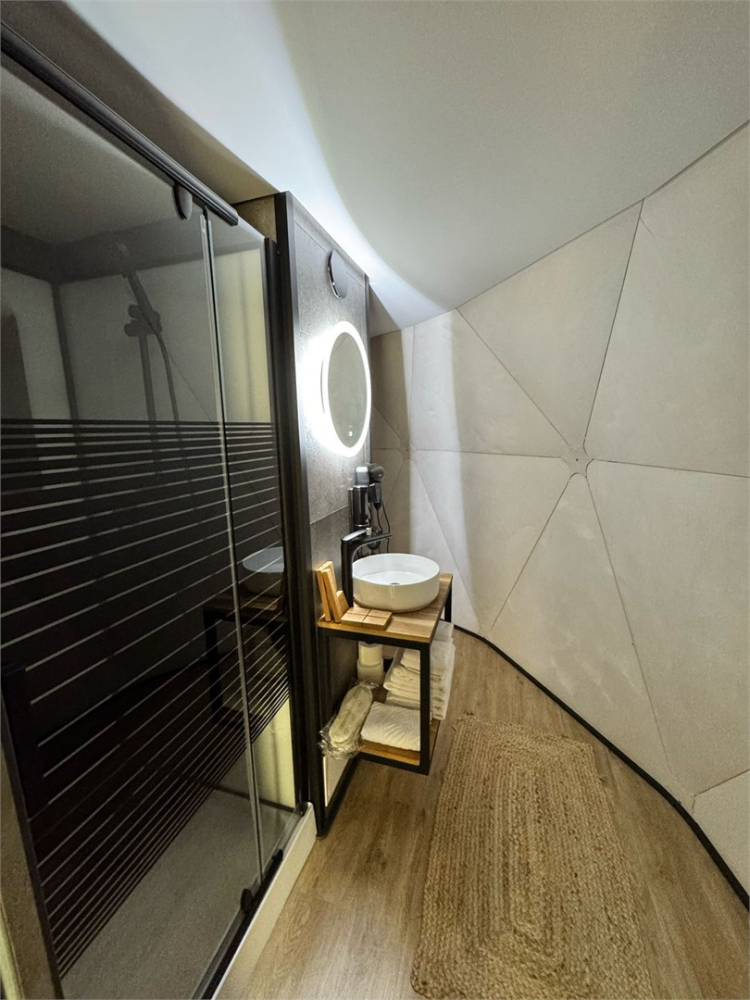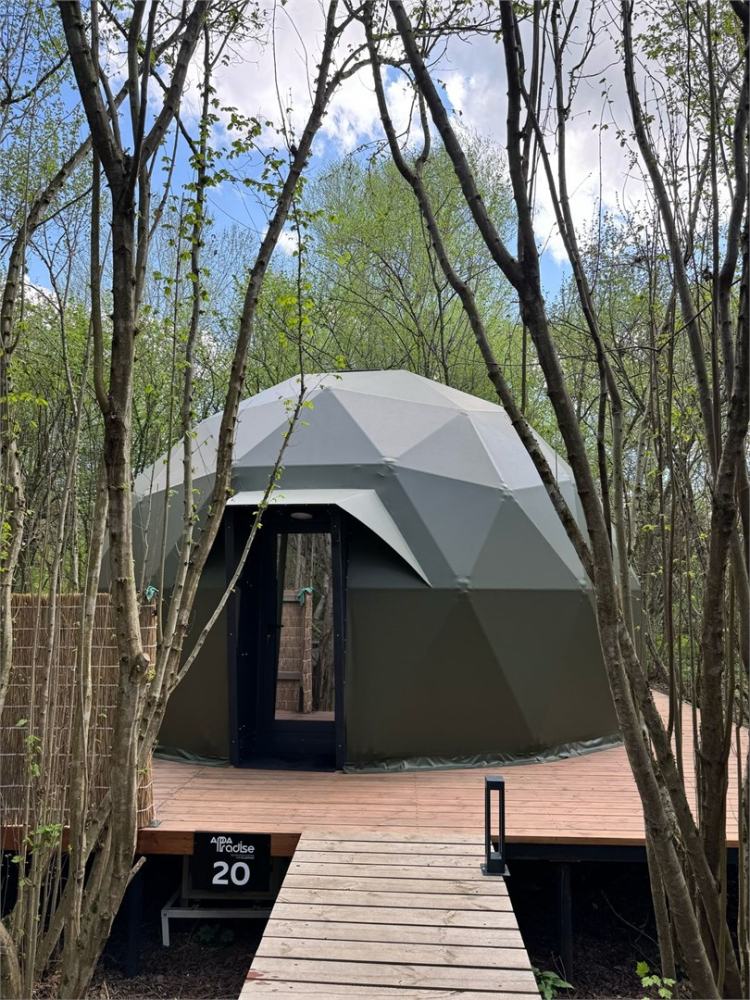В самом сердце яблоневого сада расположился большой СПА-комплекс, который включен в проживание. Гостям глэмпинга доступны: русская баня, альпийская сауна, бассейны, джакузи с гидромассажем и зона отдыха у камина с детокс-напитками и медом.