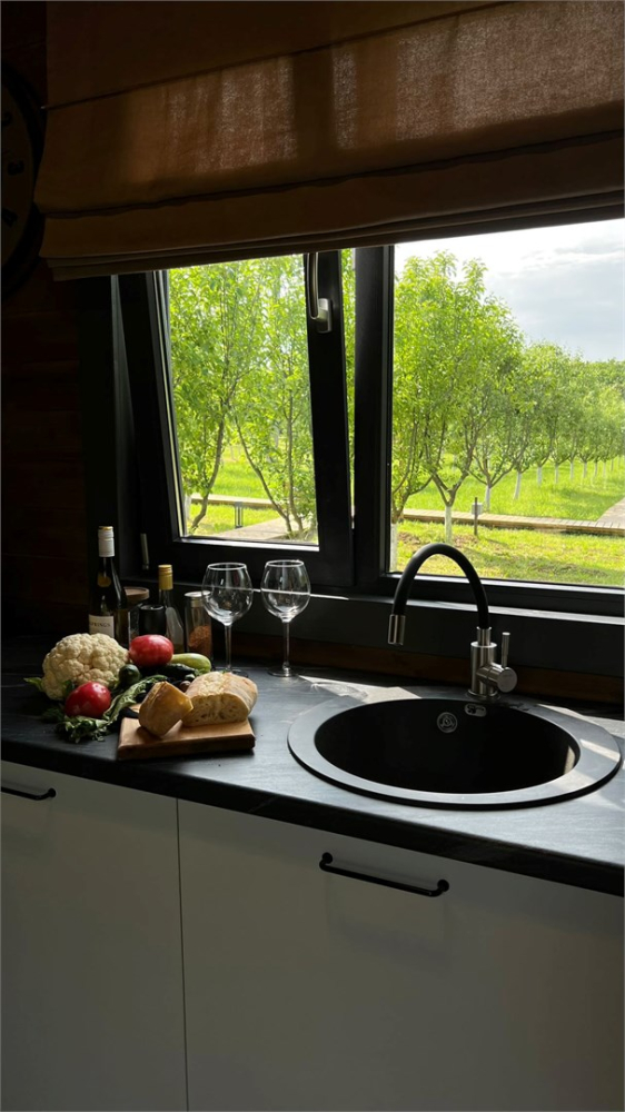 Фирменный дом, разработанный нашей командой по собственному дизайн-проекту вмещает до 4-х человек. Стиль и любовь в каждой детали не оставит никого равнодушным. Изюминкой дома служит: белая ванная с панорамным видом на яблоневый сад и индивидуальная костровая зона. Это идеальное сочетание роскоши и природной красоты.
