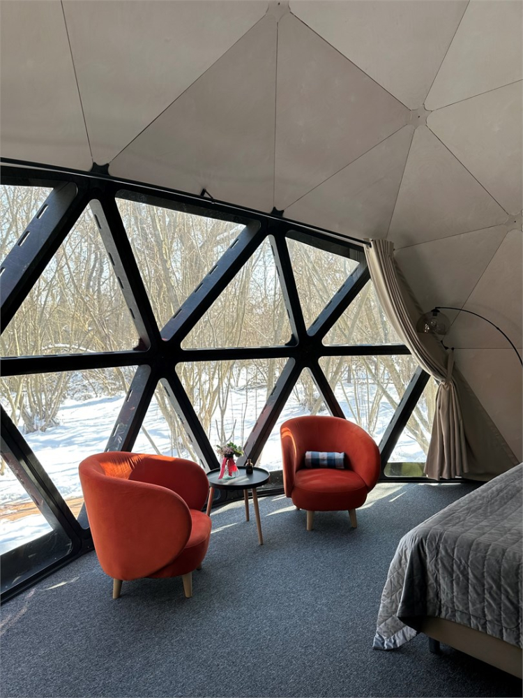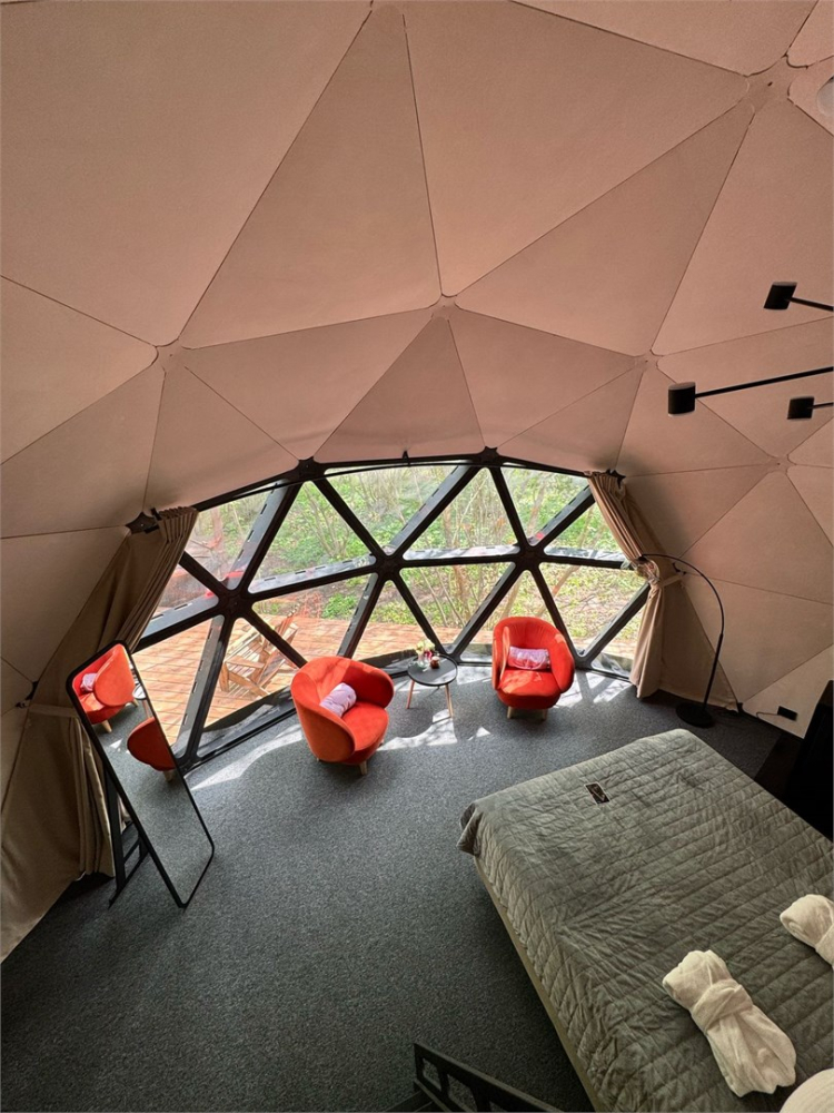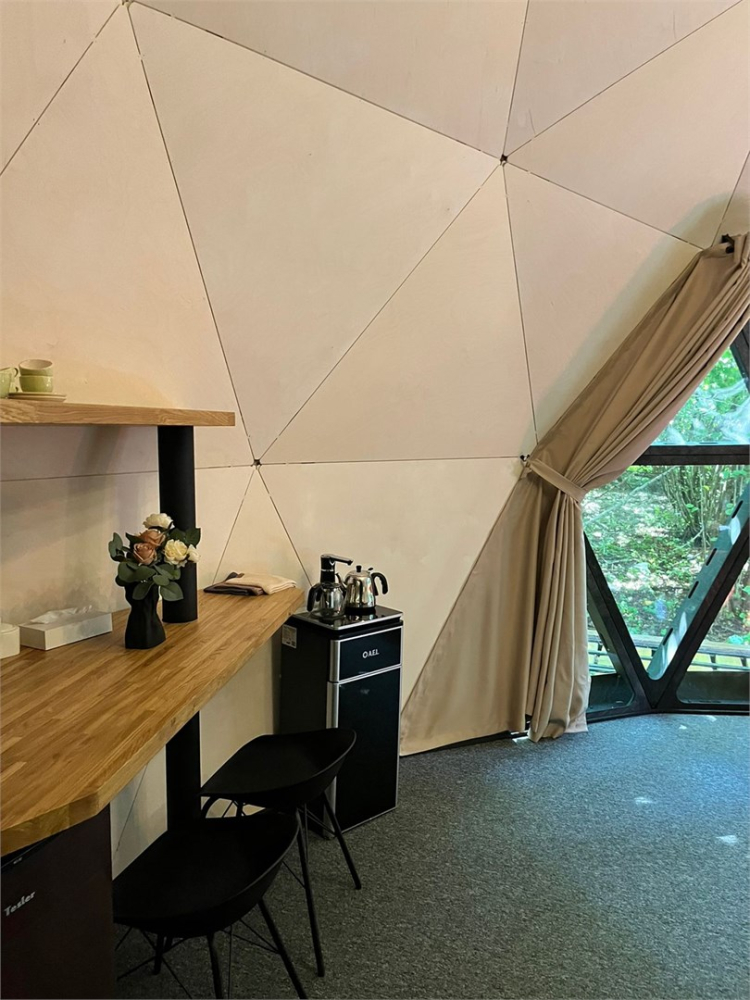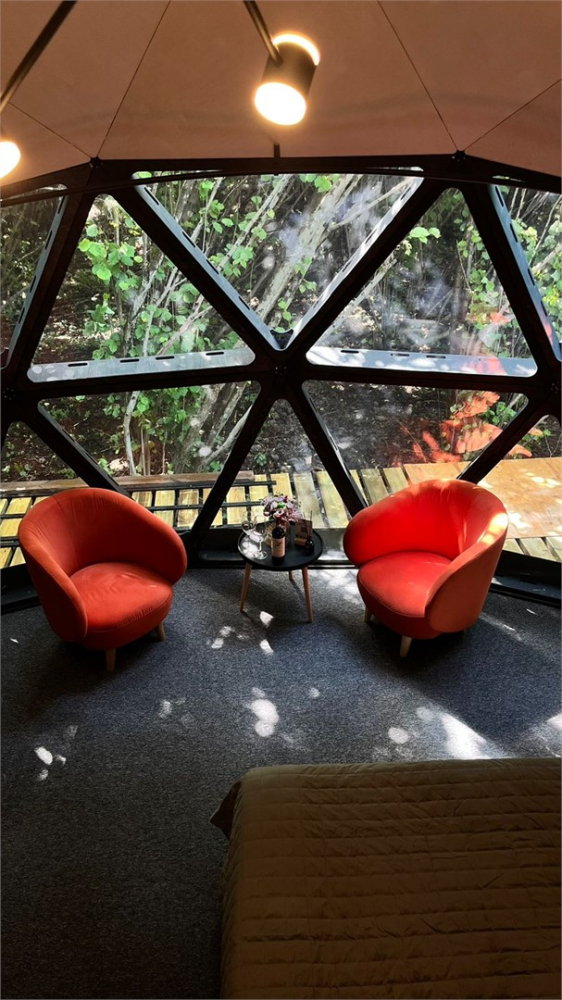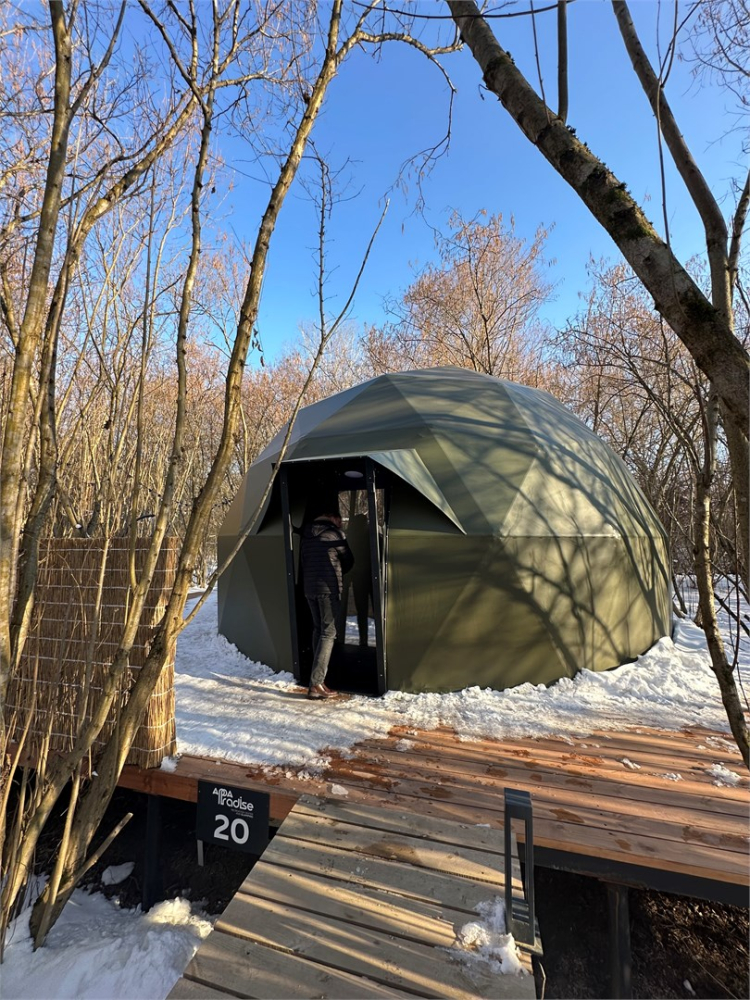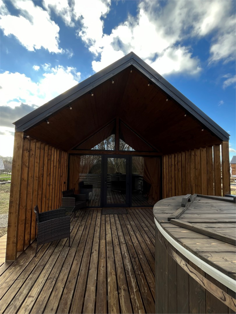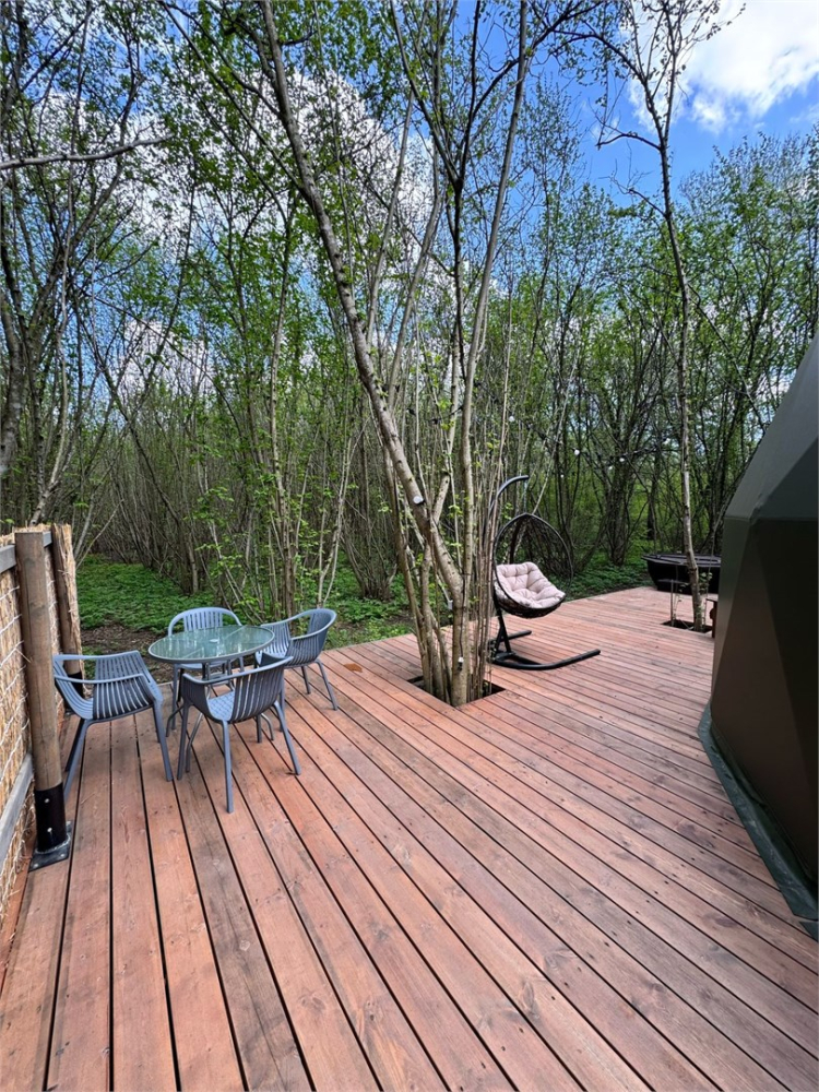 Идеальный и стильный тент ! В дождливые дни у гостей этого тента есть преимущество – крыша над террасой, где вы сможете наслаждаться шумом дождя и свежестью природы. А при хорошей погоде вы можете расслабиться в собственной фурако или приготовить ужин на BQ-зоне около домика. Максимальная вместимость: 3 человека.