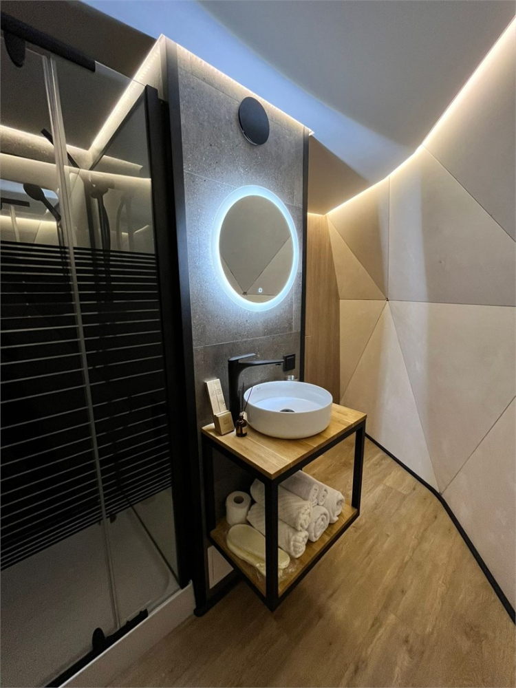 японская бочка фурако на террасе, два шезлонга и зонт от солнца, BQ-зона, раскладной диван, детская кроватка по запросу, двуспальная кровать, уютный камин, Wi-Fi, холодильник, чайник, капсульная кофемашина, полноценная кухня с плитой, набор посуды, приборы, бокалы, санузел с душевой, халат/ тапочки/ полотенца, косметические наборы, зонты, в случае дождливой погоды, отопление (теплый пол, кондиционер, обогрев на кровати)