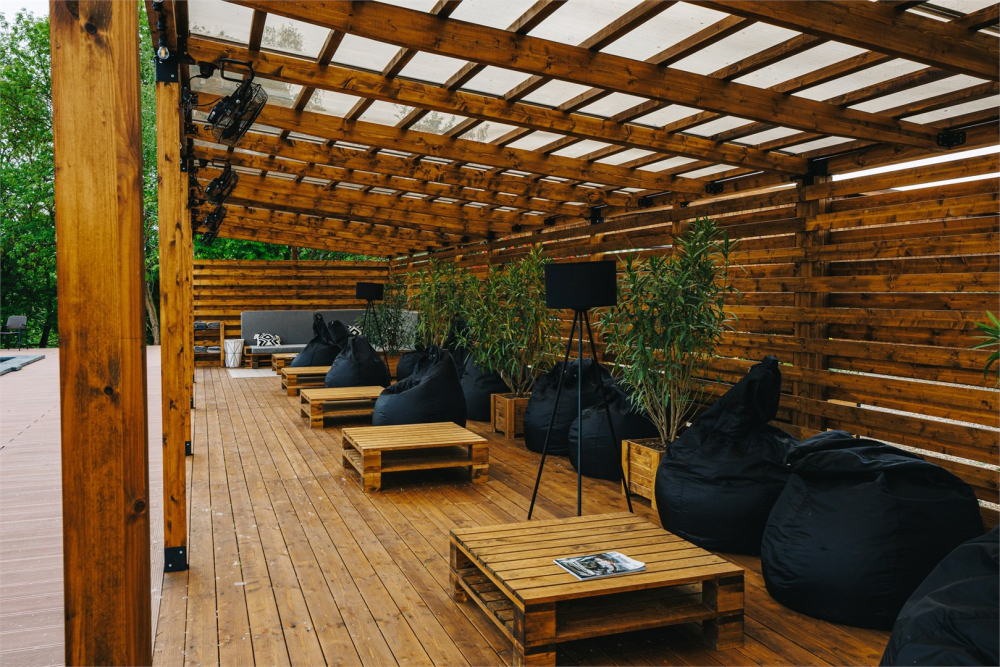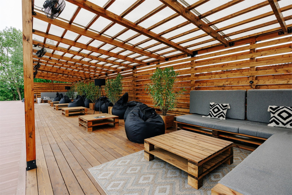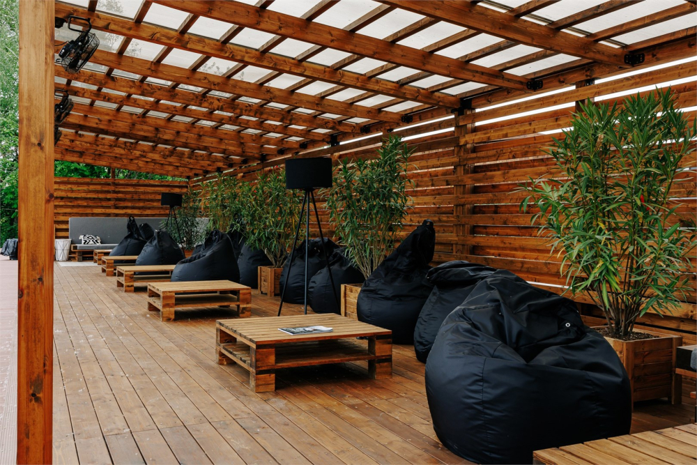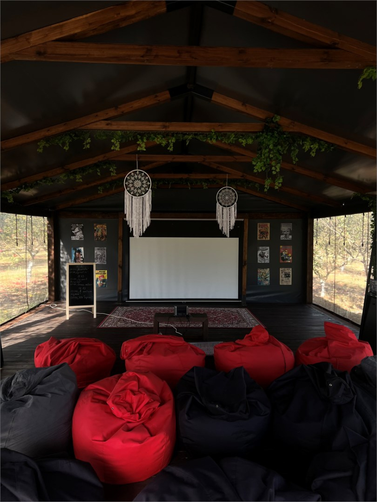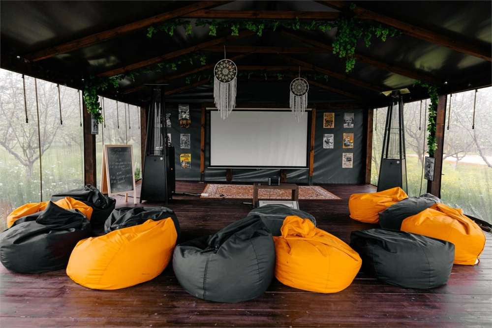 Погрузитесь в магию кино среди природы. Уютные кресла-мешки, мягкие пледы и вечерняя прохлада создают особую атмосферу. Показы проходят ежедневно в 19:00 и 21:00. В дневное время площадку можно арендовать для проведения тренингов, мастер-классов и частных мероприятий.