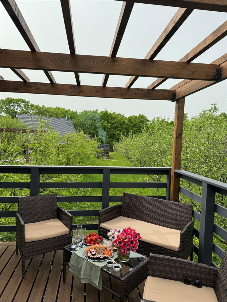 Бесспорный фаворит наших гостей. Деревянный уютный дом среди яблоневого сада, который вмещает в себя максимум 4 человека. Стиль, атмосфера и комфорт - слова, описывающие полностью Barn-house