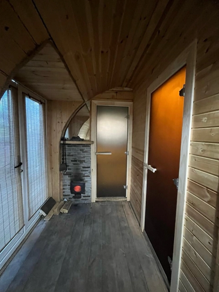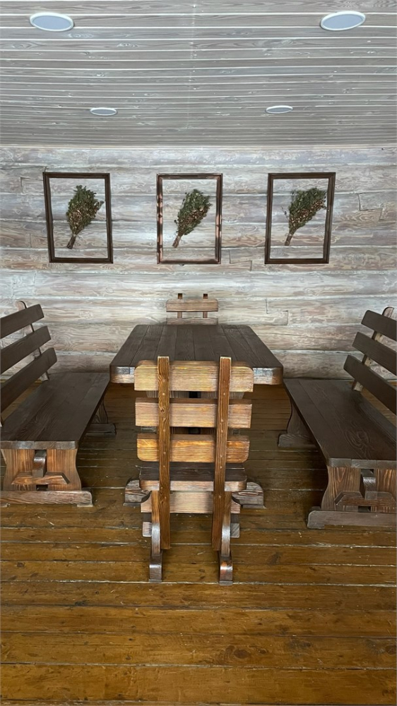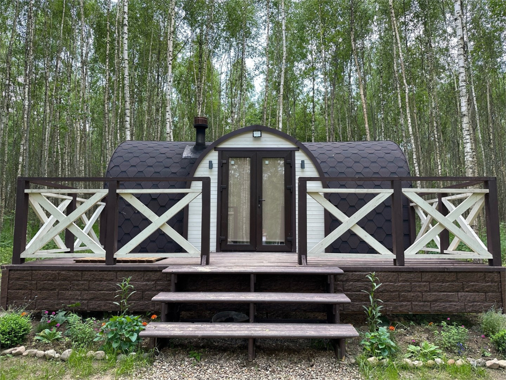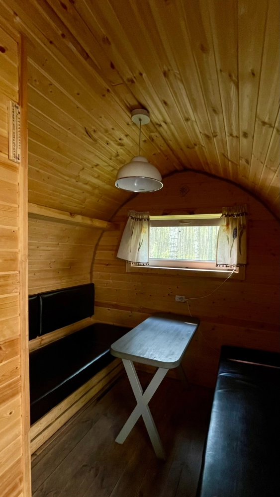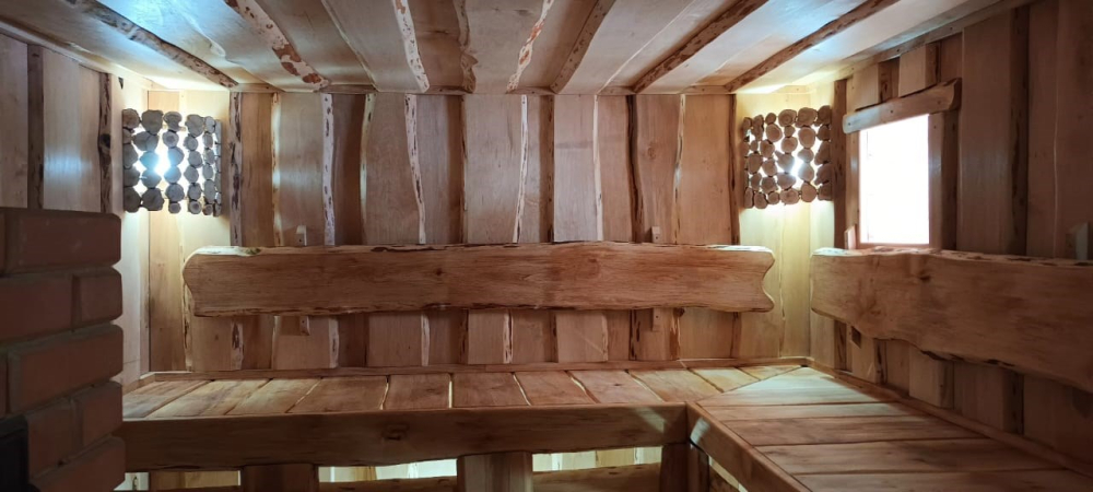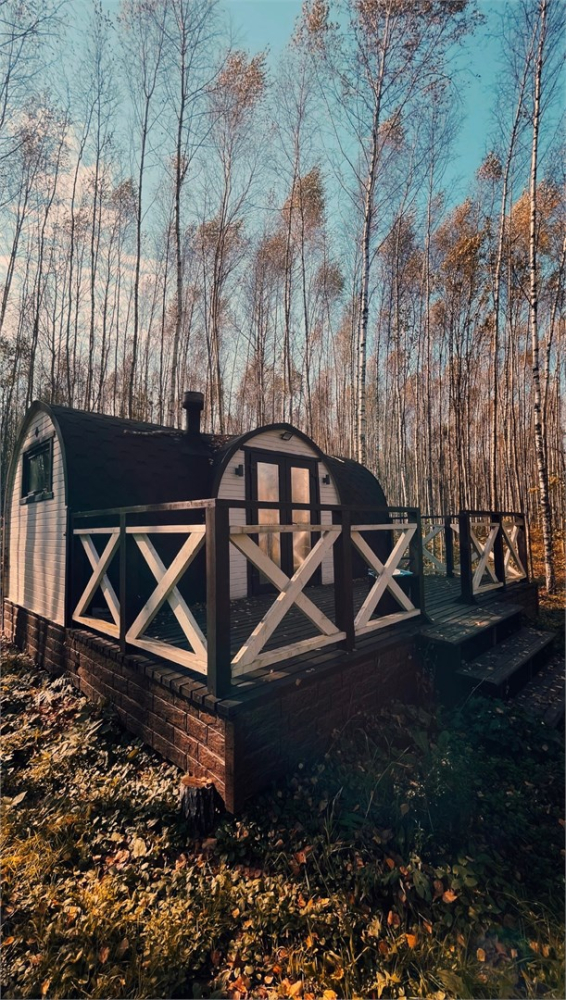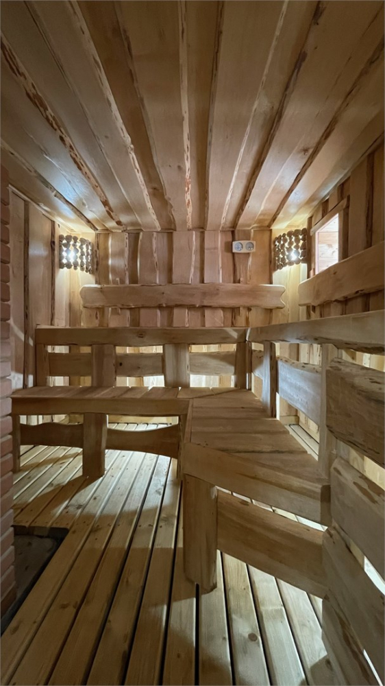 Очень уютная небольшая банька на дровах притаилась в живописном березовом лесу. Напарившись в бане, вся усталость растворяется, силы восстанавливаются, и каждая клеточка тела наполнятся радость. Возле баньки предусмотрен мангал, а на террасе расположены шезлонги, чтобы любоваться природой.