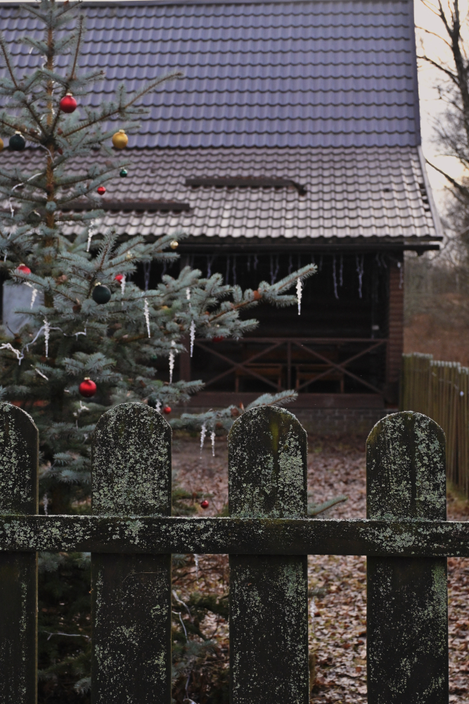 Находятся около домика.