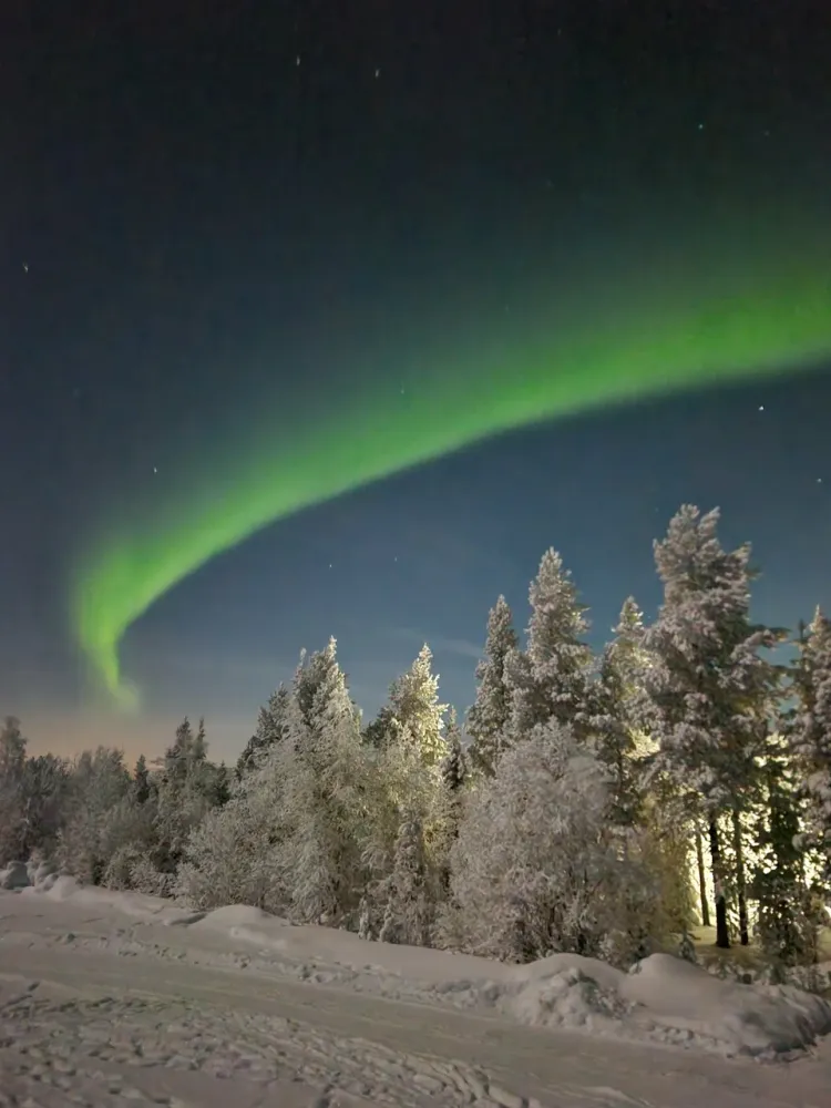 Это одно из лучших мест для охоты за этим природным чудом — без городской засветки и в окружении северной природы.