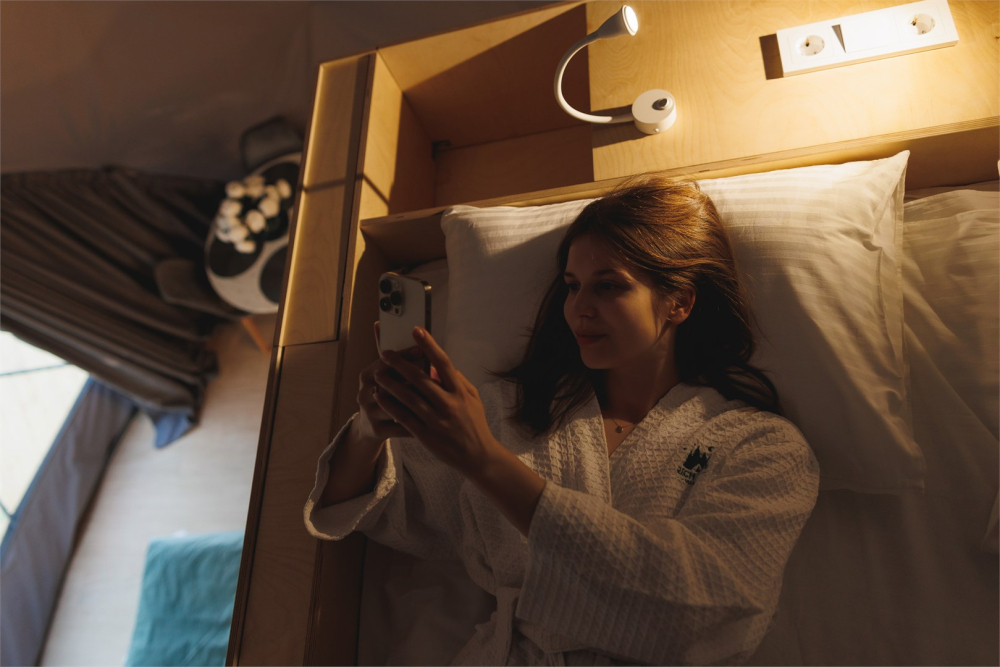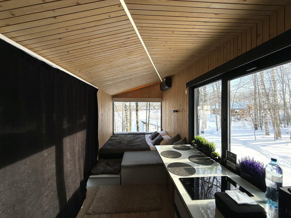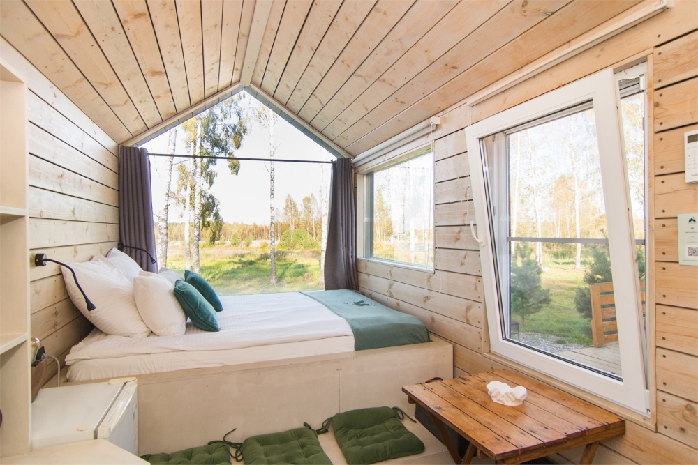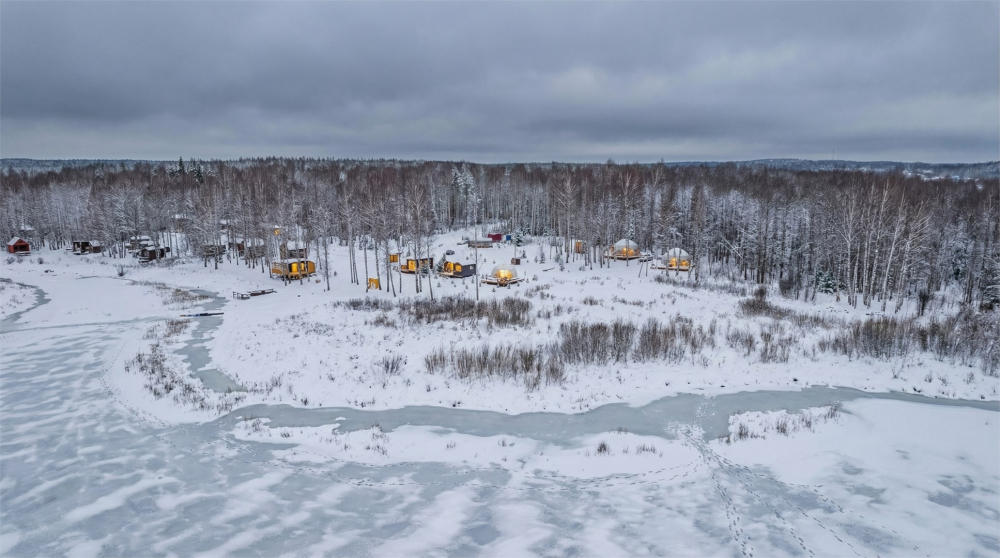 Просторные дома с большими окнами стирают границу между интерьером и лесом. За завтраком вы наблюдаете туман над рекой, днём — игру солнечных бликов на воде, а ночью — звёздное небо прямо из гостиной.