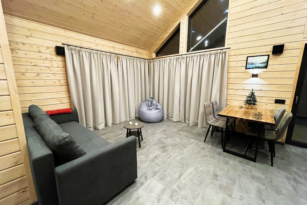Каждый дом полностью оборудован для беззаботного отдыха: удобные спальные места, кухня, санузел, отопление, техника и высокоскоростной Wi-Fi.