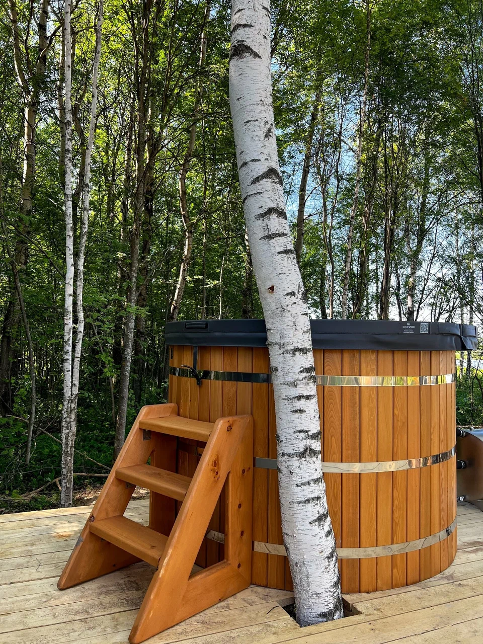 Горячий чан есть около домиков Geocupol с купелью, Geocupol Smart Deluxe с купелью, Geocupol Deluxe с купелью, Hygge Lodge с купелью.