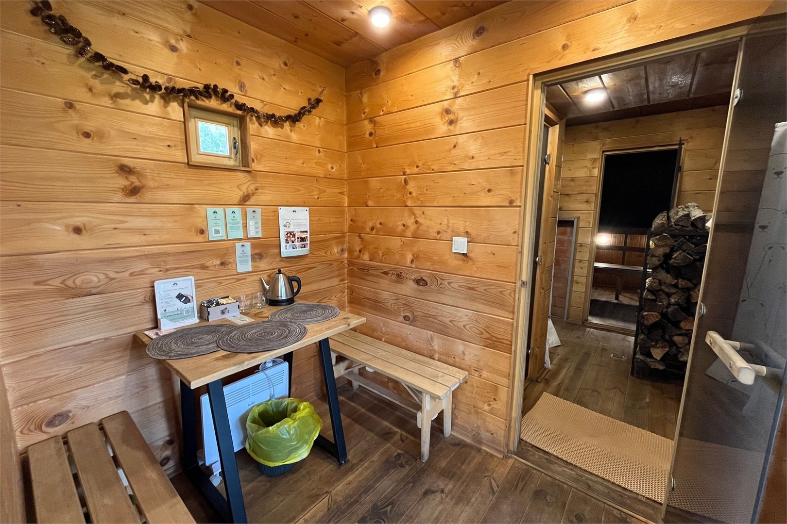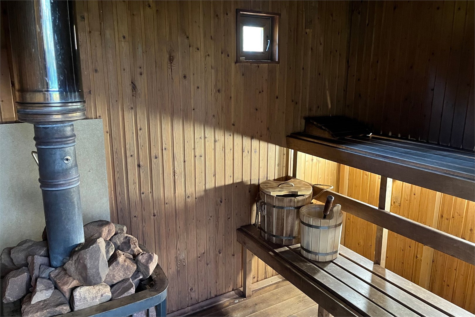 Дровяная печь, парилка на 6 человек, место для отдыха, душевая, санузел.