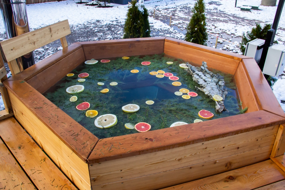 Чан возле каждого домика (оплачивается отдельно). Глубокое, проникающее тепло живой воды и пара восстановит ваши силы и подарит состояние полного покоя. Банный чан у дома