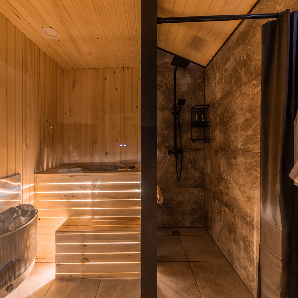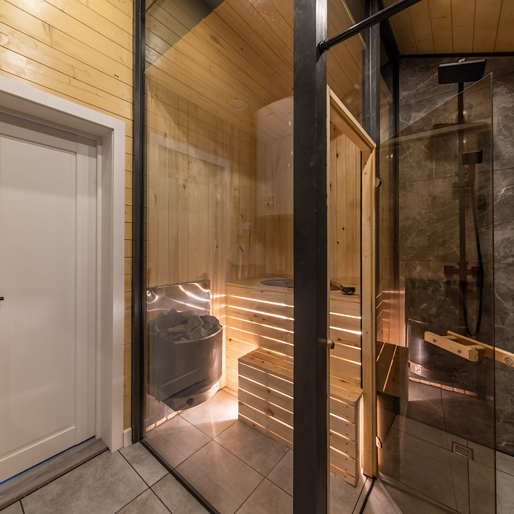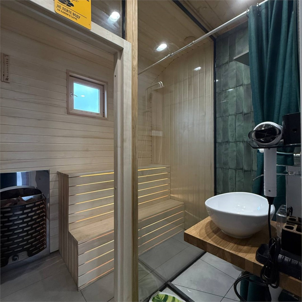 Сауна есть около домиков Glassbox 108 Premium, Lato-85 Plus, Lato-76, Glassbox 108 Premium 2.