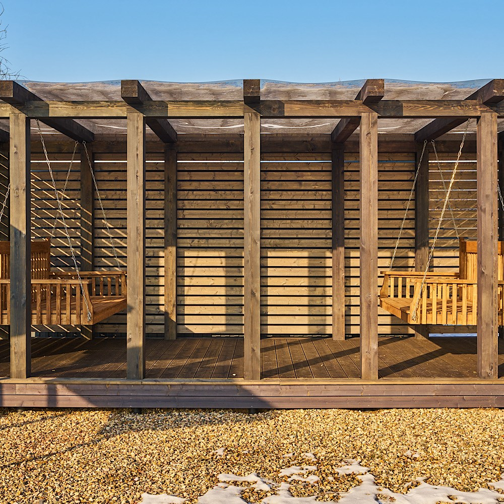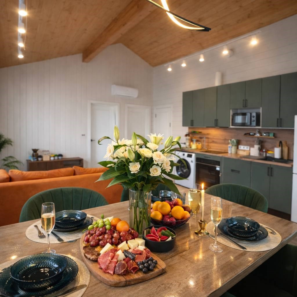 Вечером — душевные беседы на террасе под мягкий свет и тишину природы.