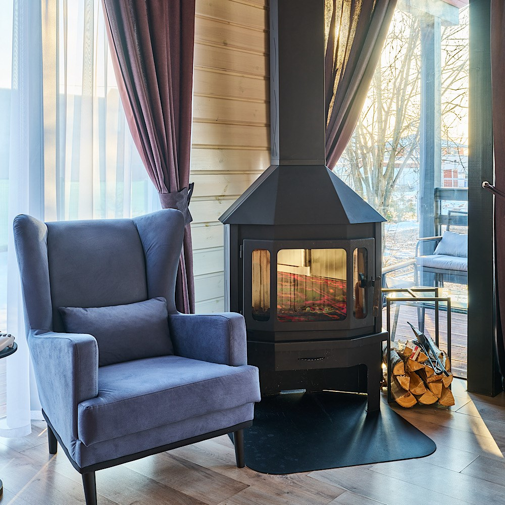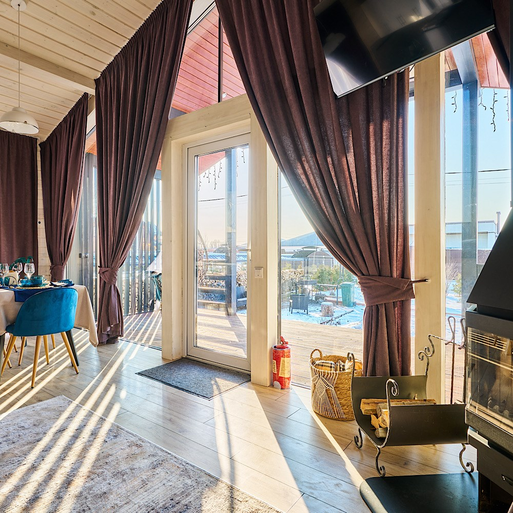 Сауна с панорамным окном (первая топка включена в стоимость проживания - 3 часа парения;