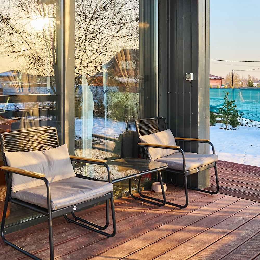 крытая терраса с мягкими креслами