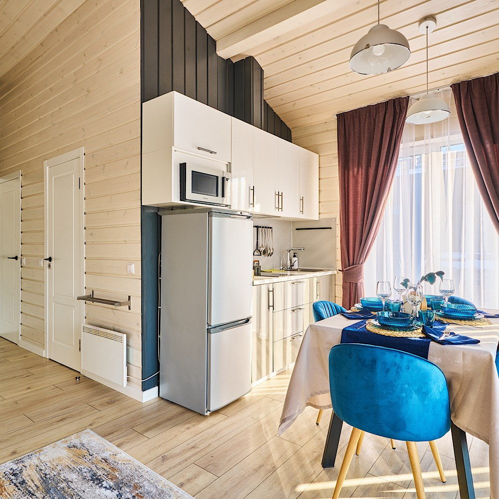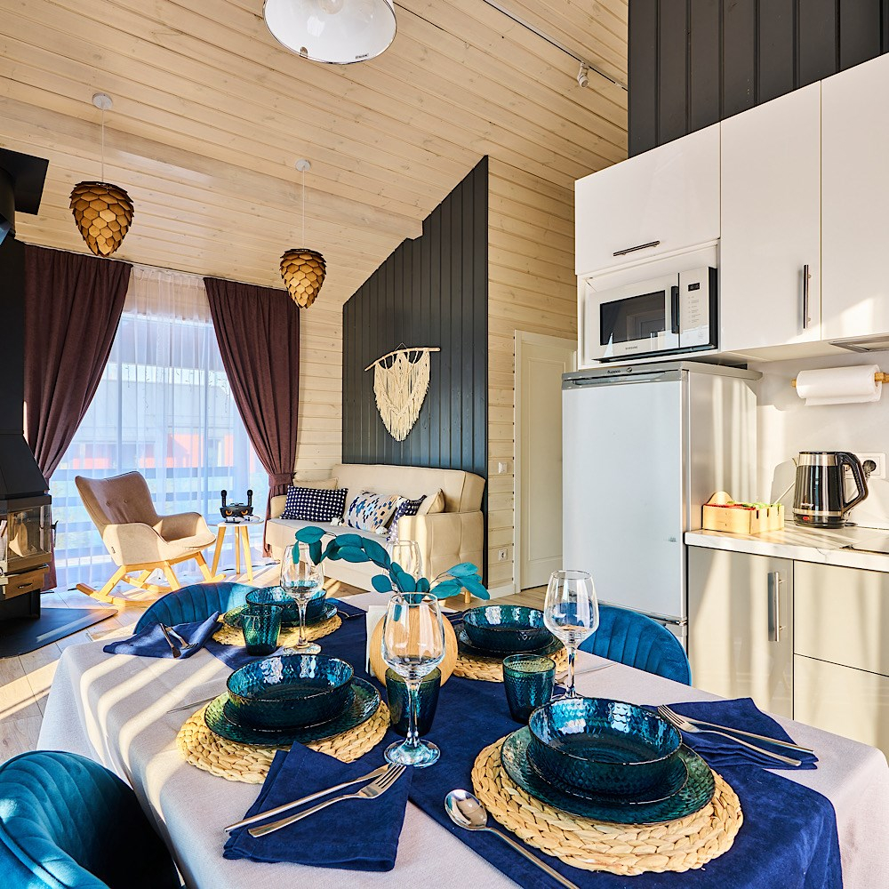 Наши уютные дома полностью оснащены всем необходимым для приятного отдыха в кругу семьи и друзей: