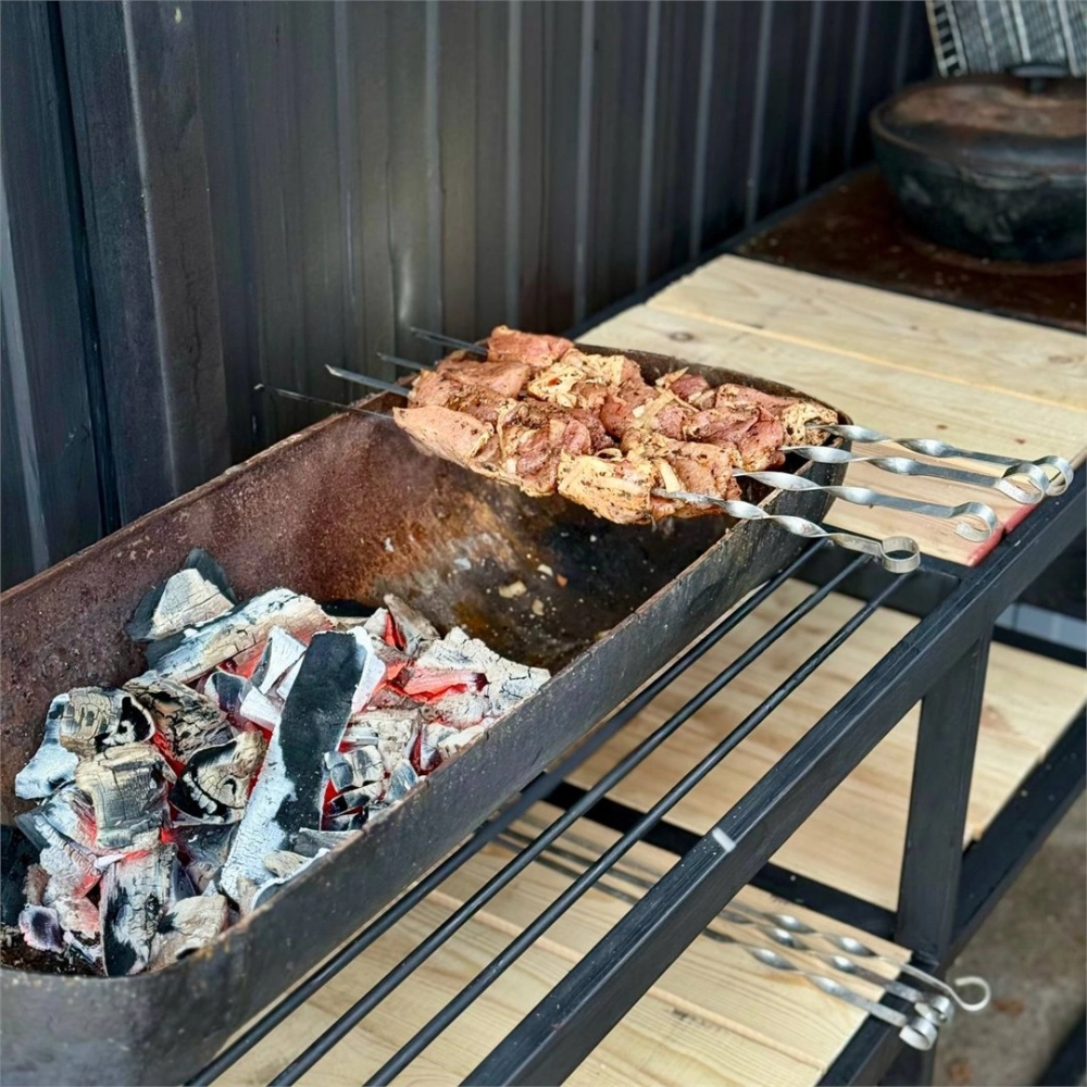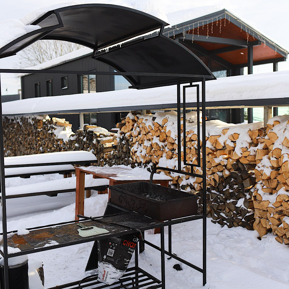 Мангальная зона (решетки, шампуры, уголь и розжиг — с собой)