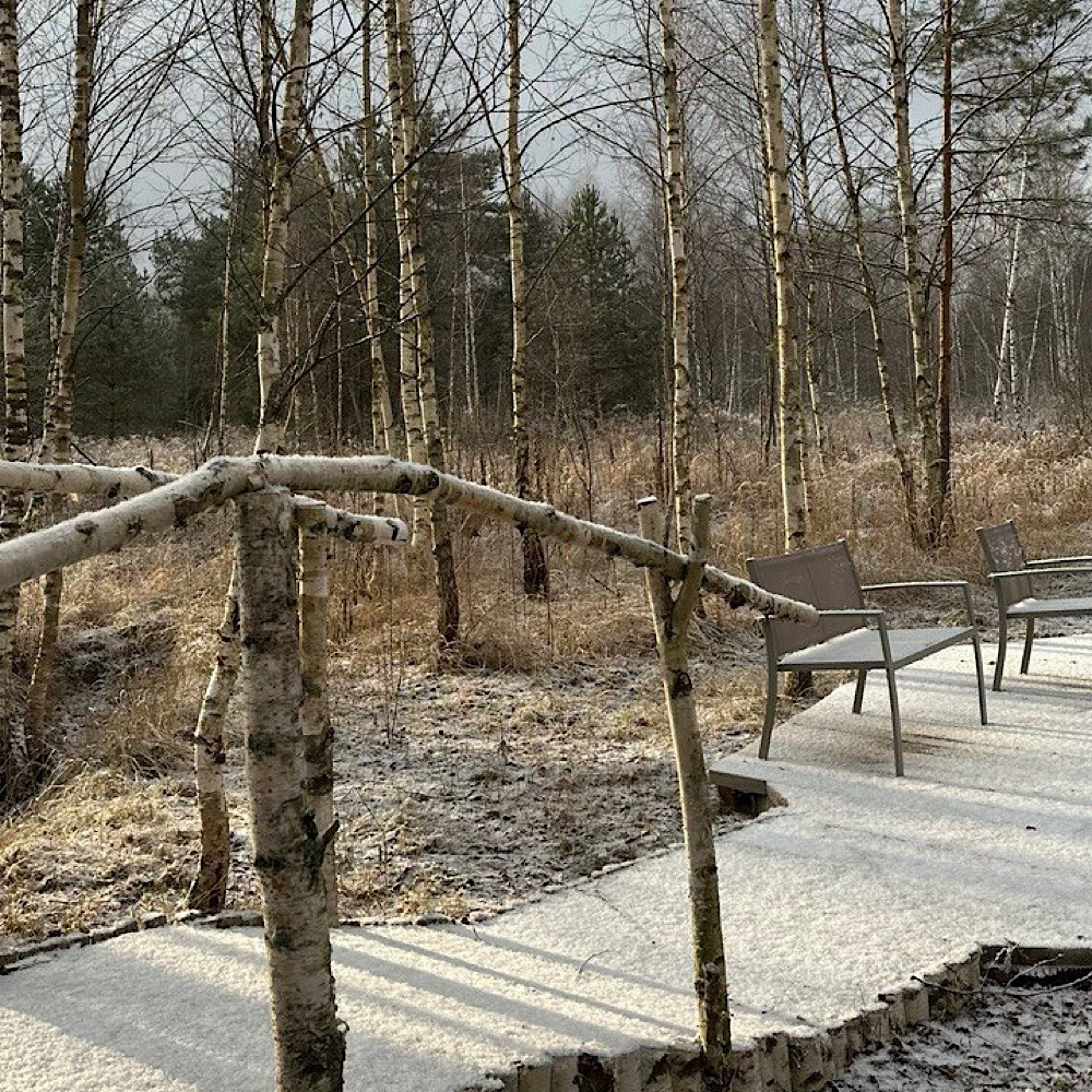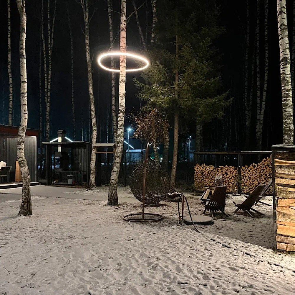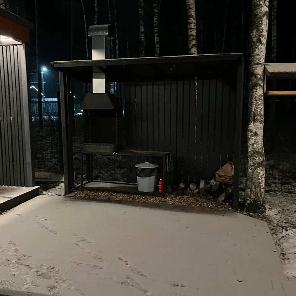 Мангальная зона есть около домиков Glass Box 85, Lato-80 Sauna, Lato-65 Sauna, Дуплекс с баней на компанию до 6 гостей, A-Frame 45.