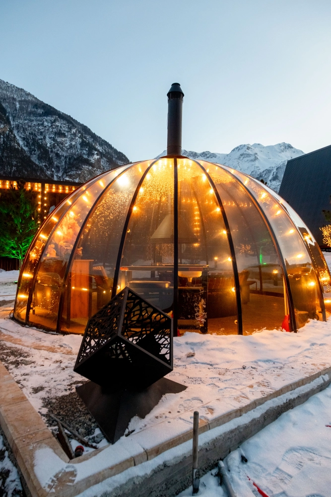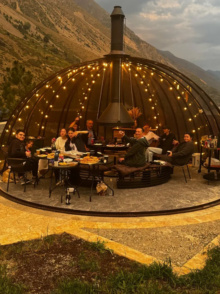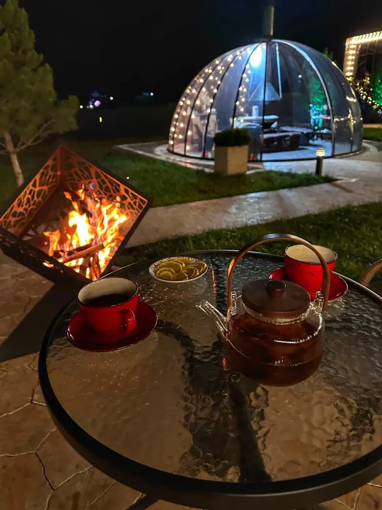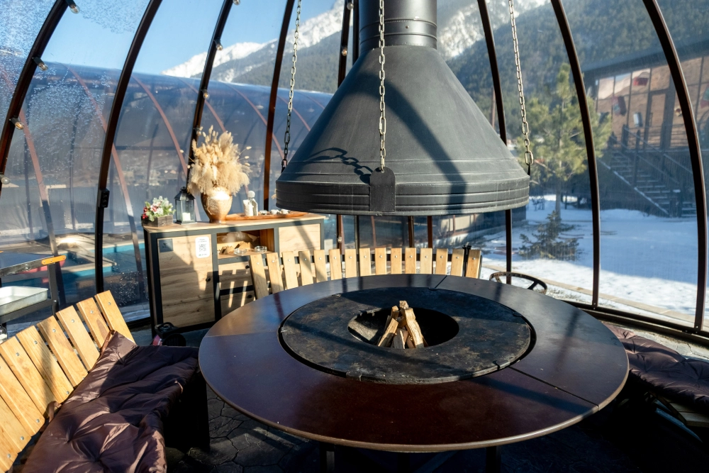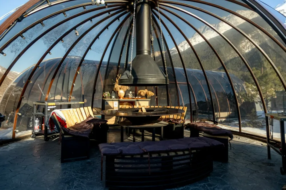 Уютные панорамные купола с гриль-очагом — отличный вариант для вечерних встреч с друзьями и семейных ужинов на природе.