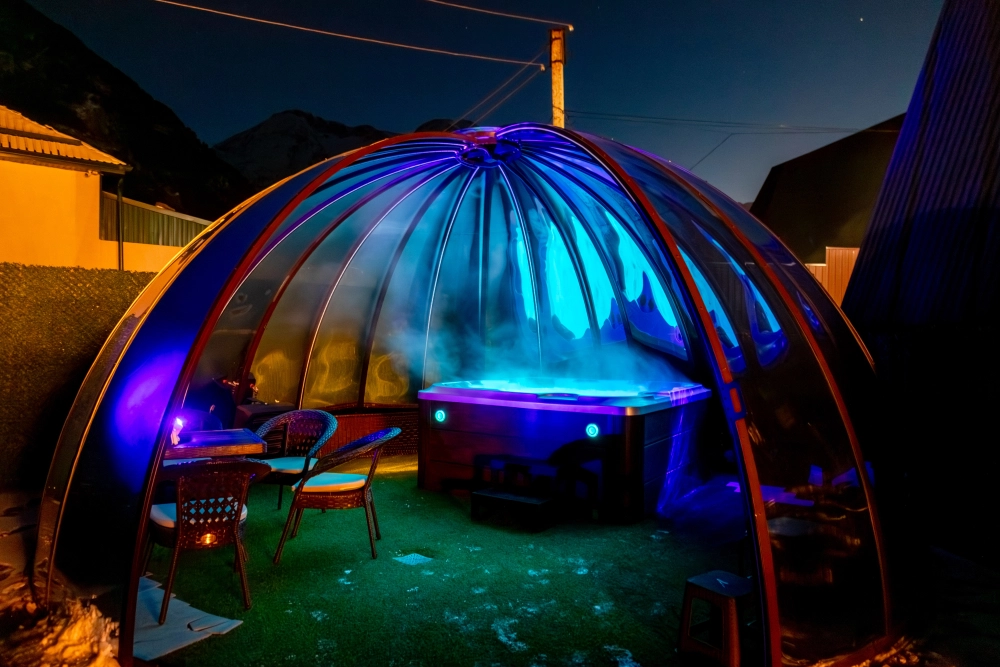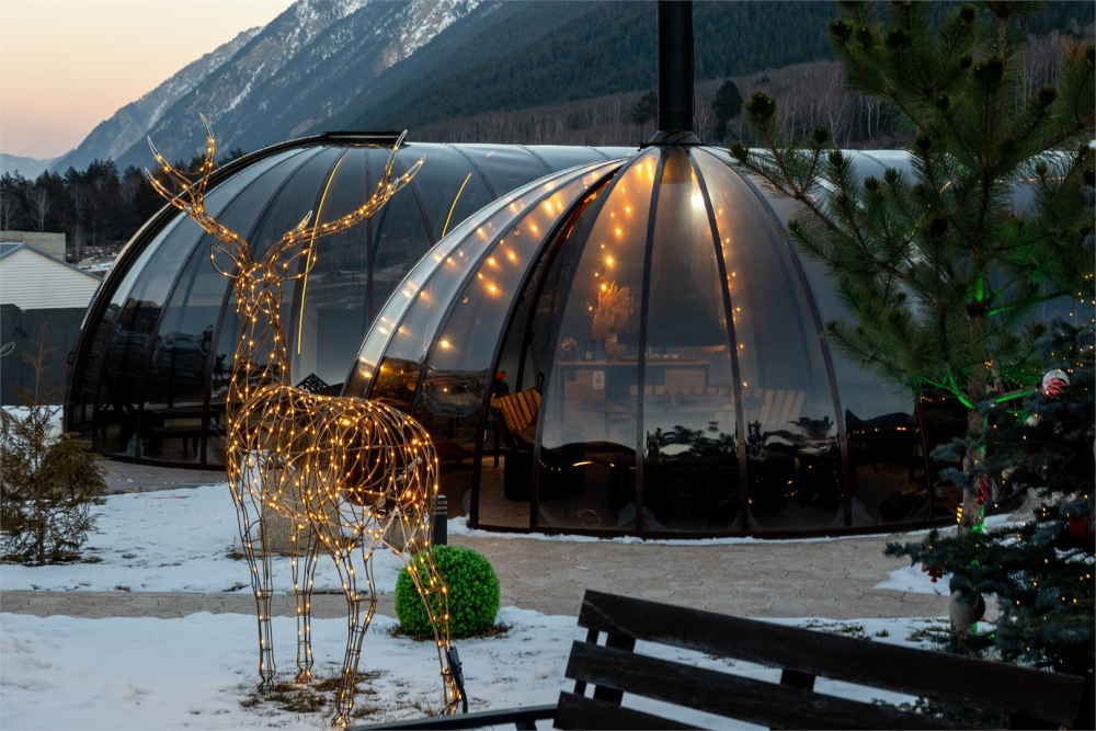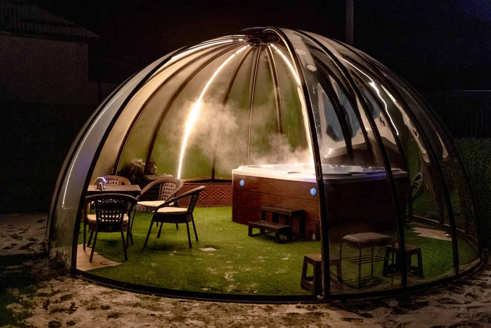 - прозрачный купол — любуйтесь небом и природой, не покидая тёплого пространства;
