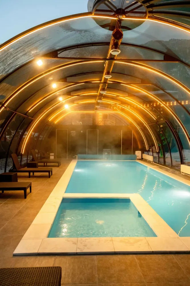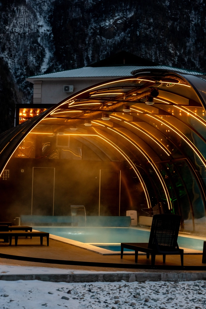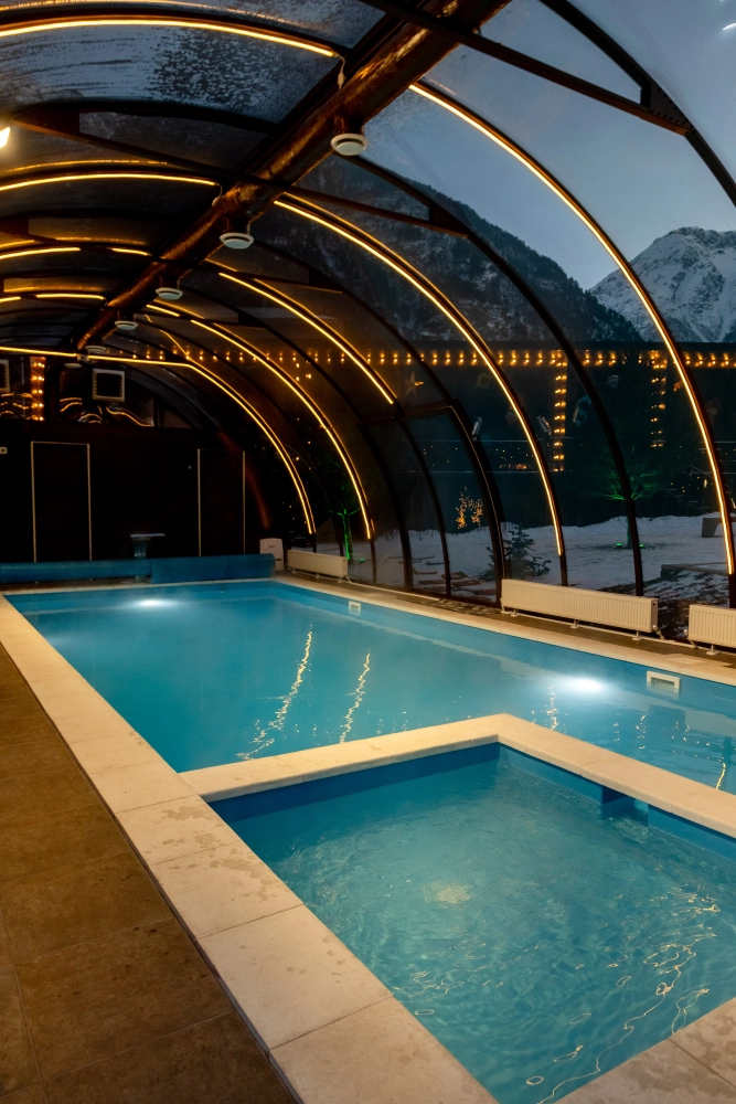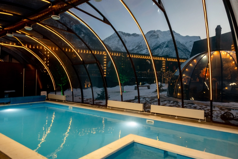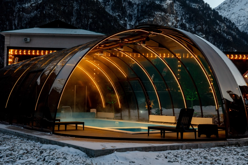 Погрузитесь в атмосферу комфорта и уюта — приглашаем вас посетить наш подогреваемый бассейн под прозрачным куполом!