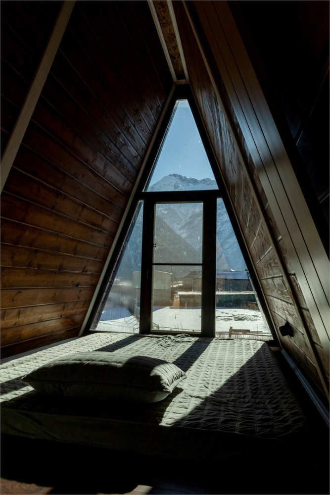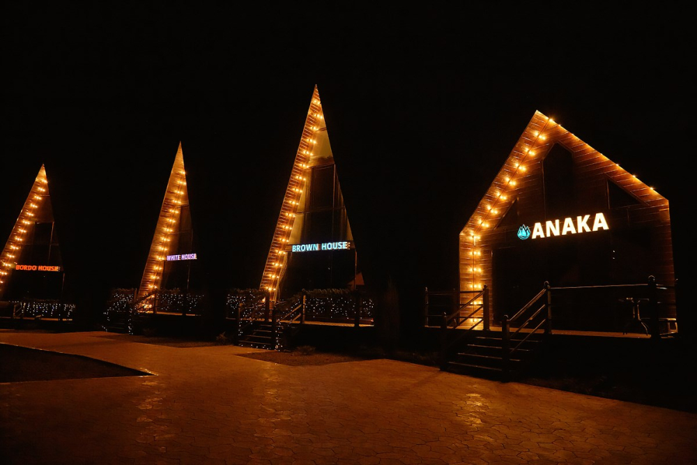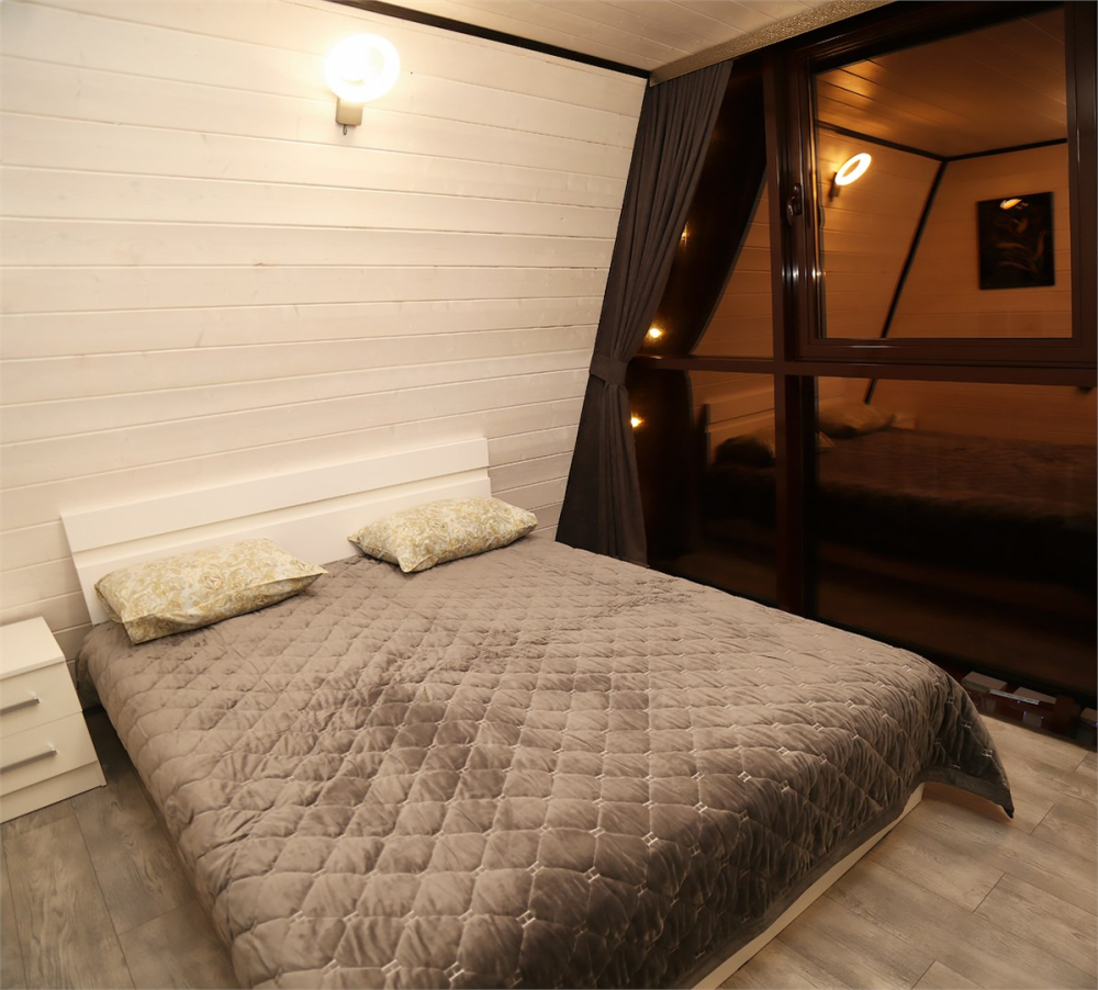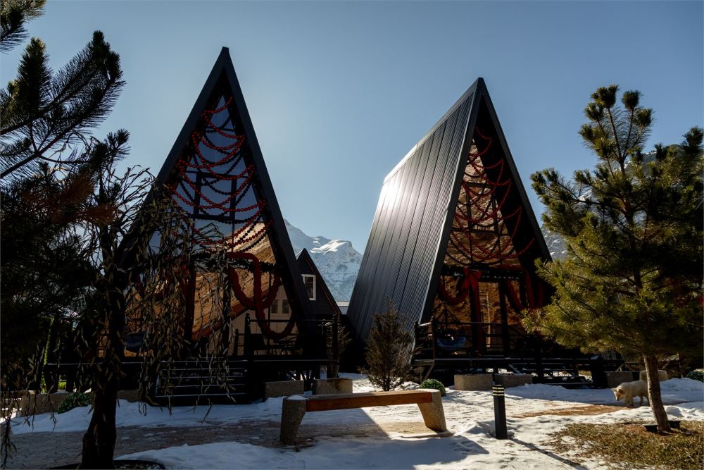 На территории расположены 6 дизайнерских коттеджей в популярных архитектурных стилях A-frame и лофт.