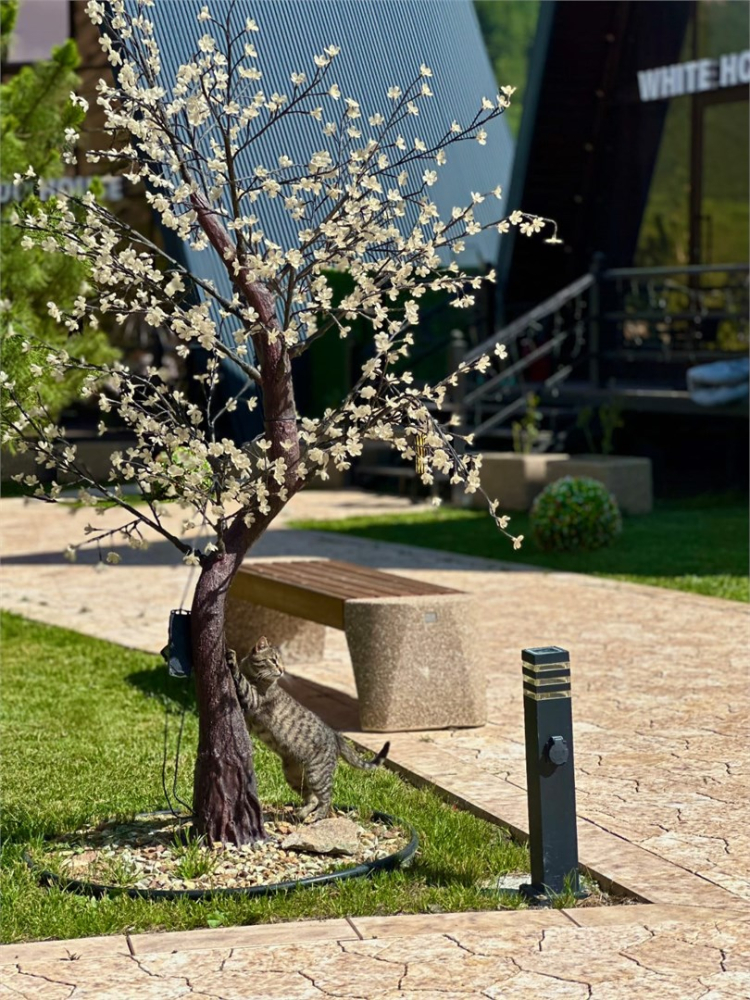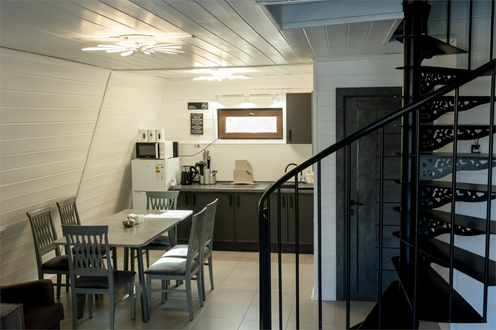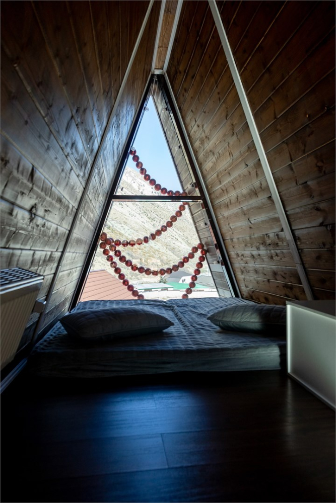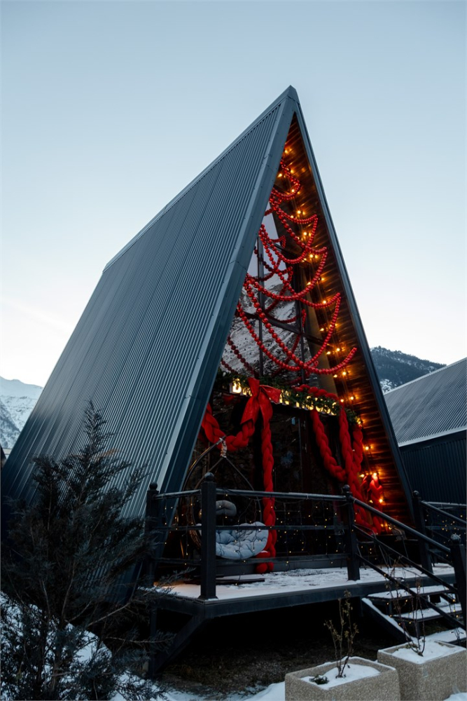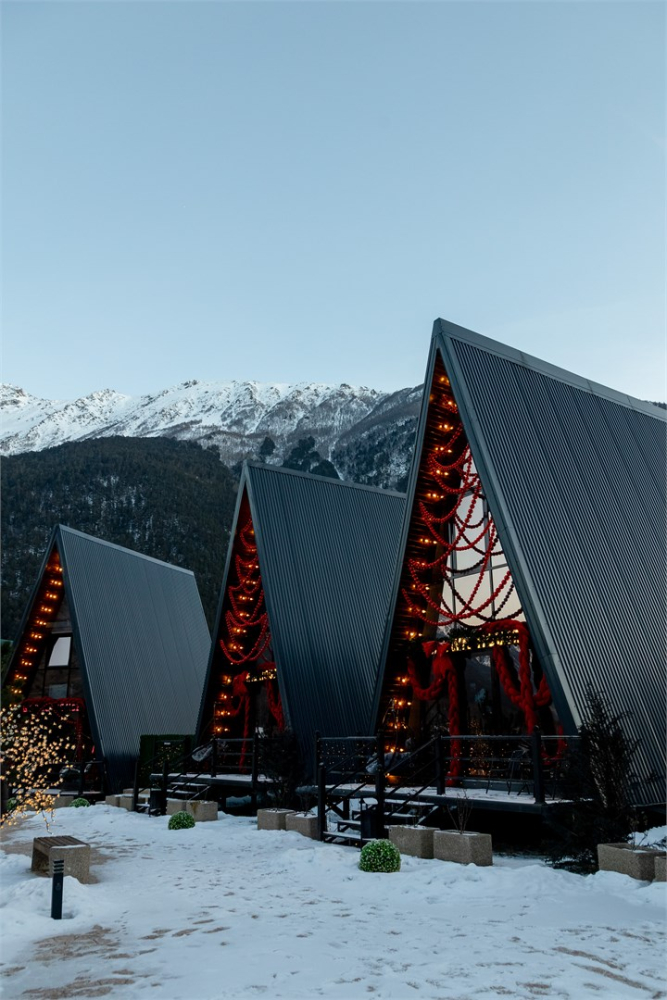На территории расположены 6 дизайнерских коттеджей в популярных архитектурных стилях A-frame и лофт.