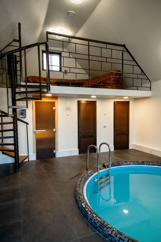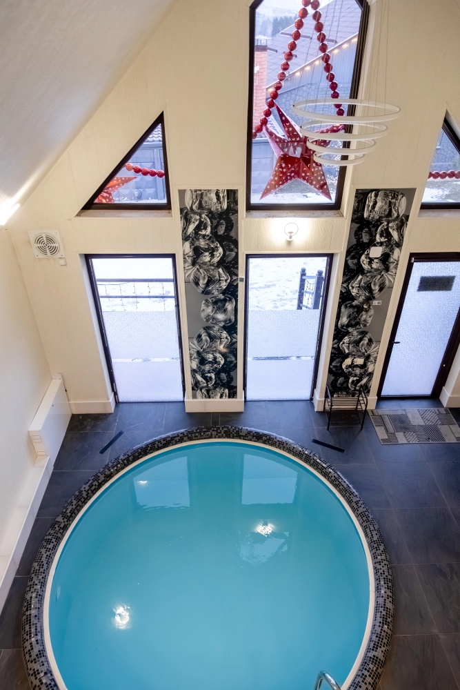 - после жаркой сауны окунитесь в бассейн диаметром 3 м — он расположен в тёплом крытом помещении и подогревается для вашего комфорта;