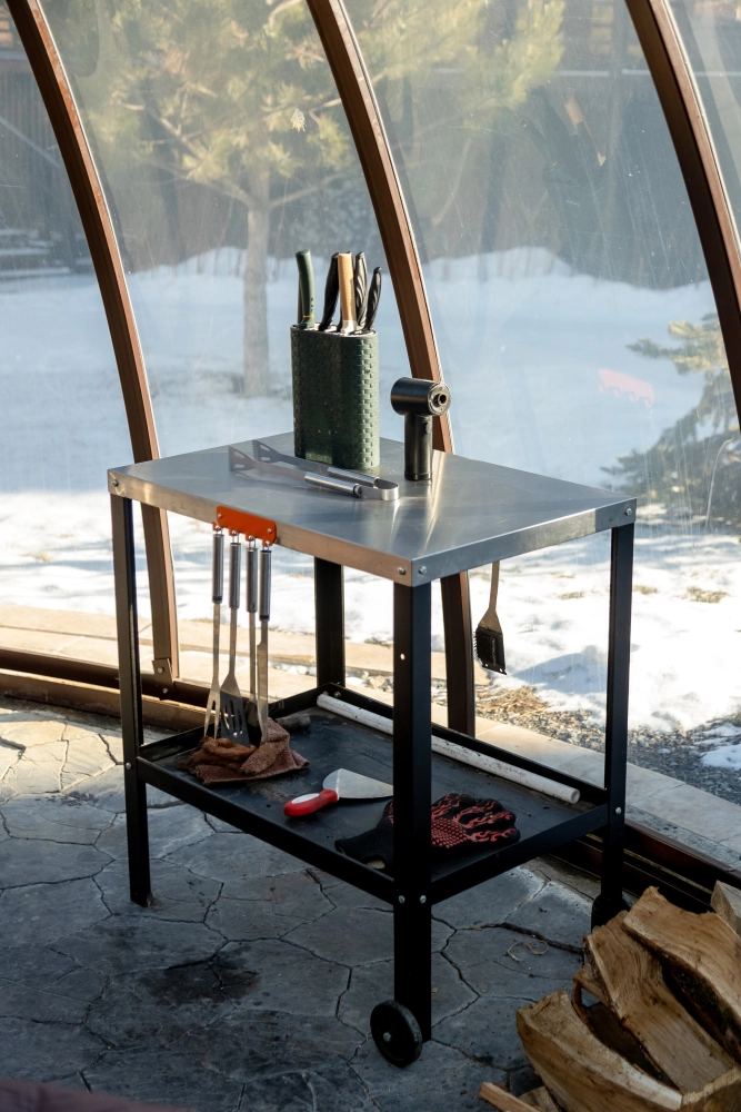 - Просторный гриль‑стол для настоящего барбекю — готовьте любимые блюда прямо на свежем воздухе.