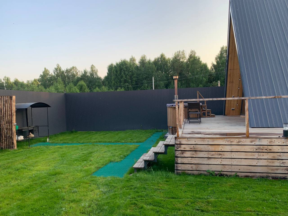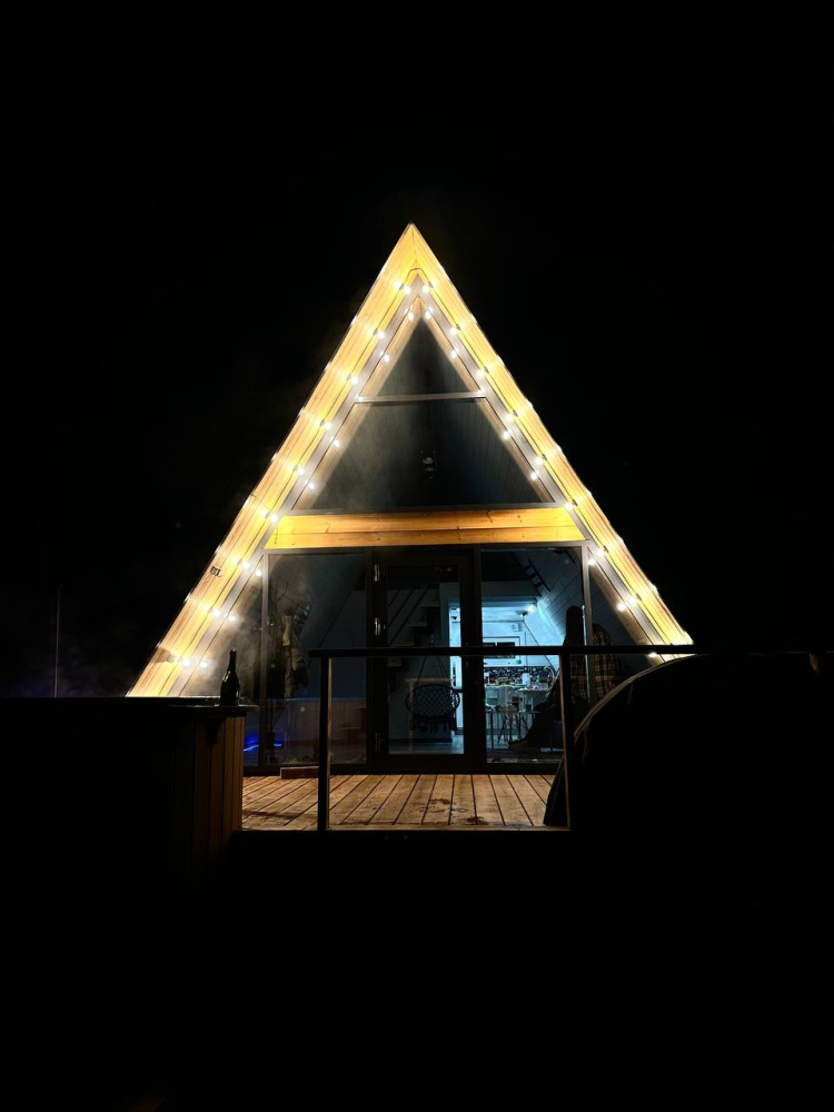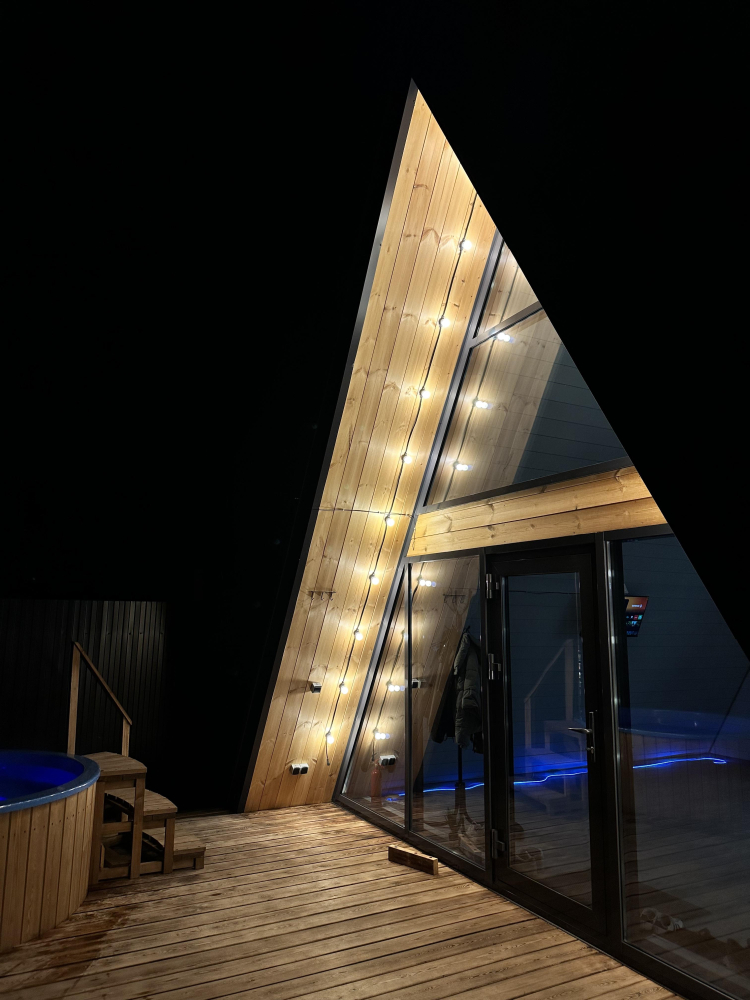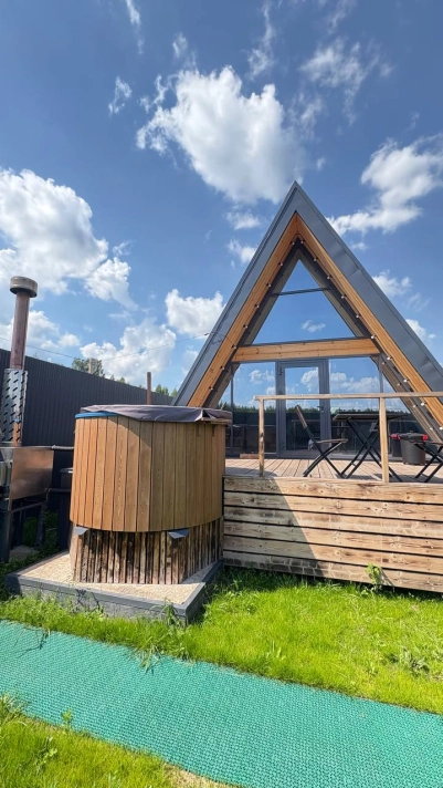 A-Frame с баней и чаном в сосновом лесу