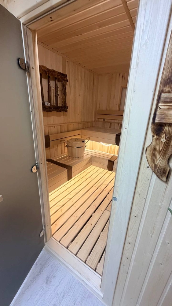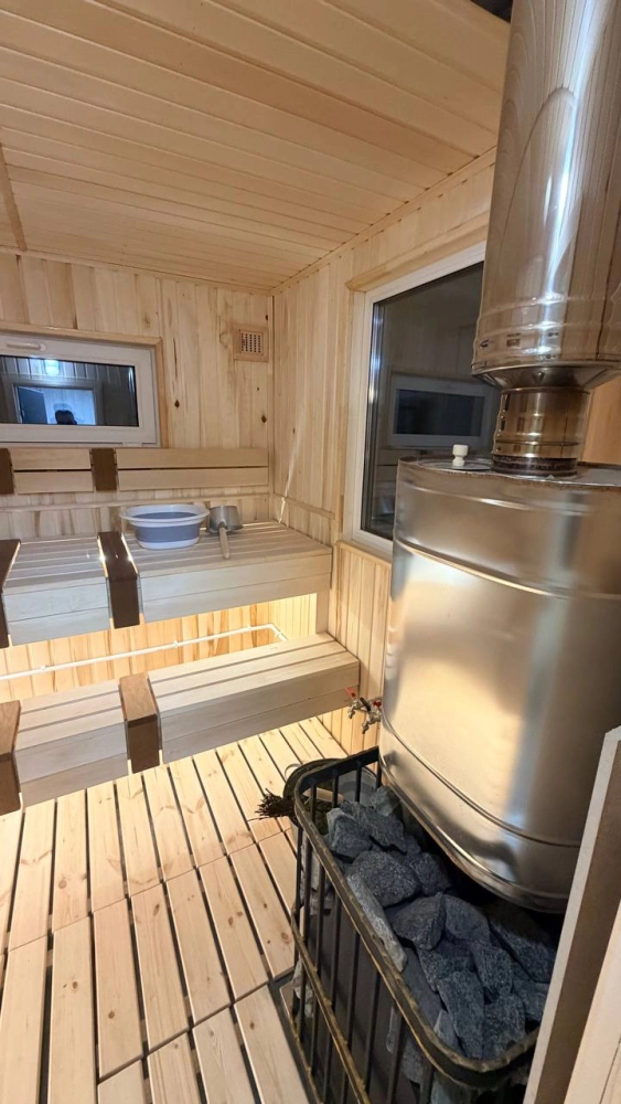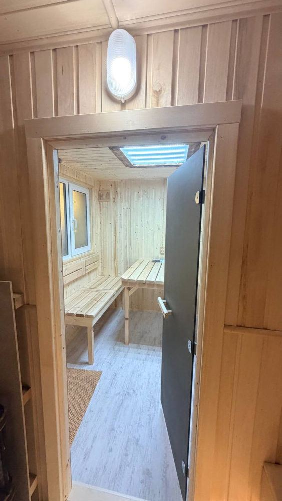 Настоящая баня 5,5 × 2,5м Парная, ароматные масла, вкусный чай и простыни уже включены. Париться — кайфовать! Стоимость: 6000₽