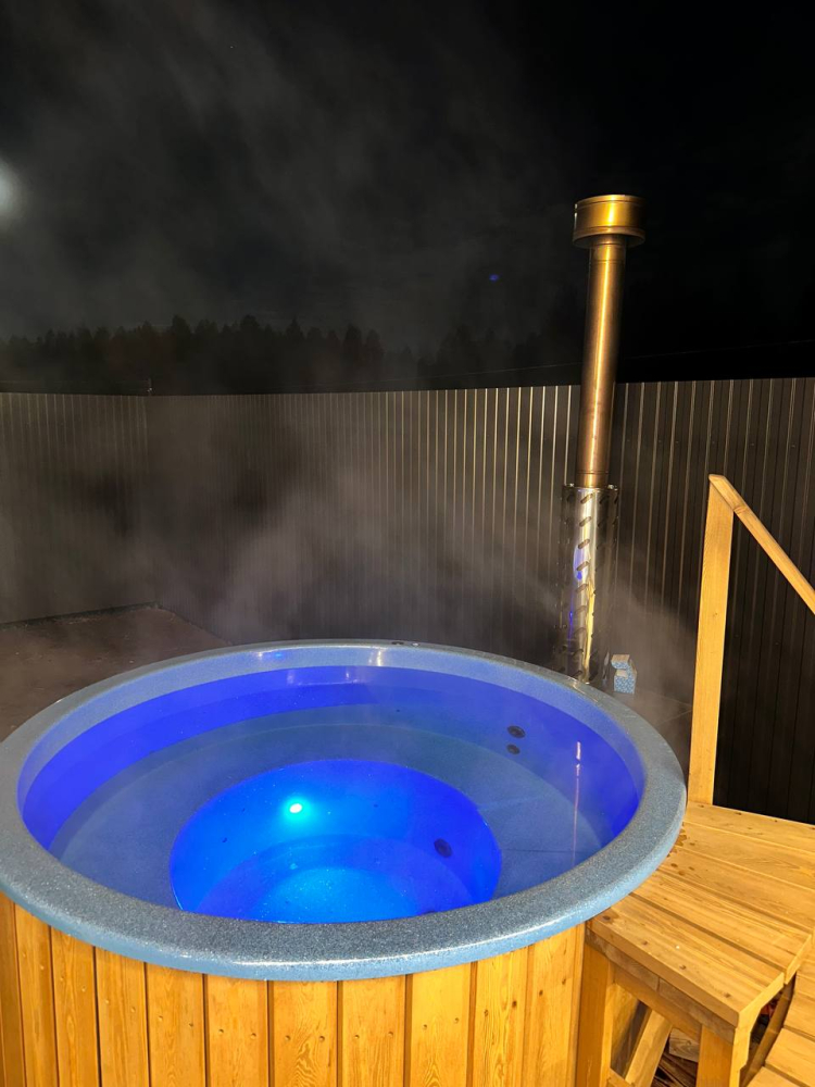 Уличный чан с гидромассажем и подсветкой Бурлящая горячая вода под звёздами, рядом лес. Идеально для расслабления после заката. Стоимость: 6000₽