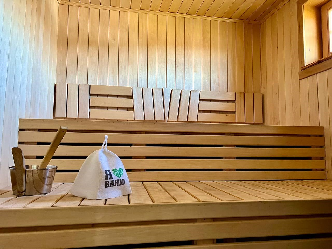 Сауна есть около домиков 1 дом комфорт-класса семейный, 2 дом комфорт-класса семейный, 3 дом комфорт family, 4 дом комфорт-класса, 8 дом комфорт класса NEW, 6 дом класса NEW.