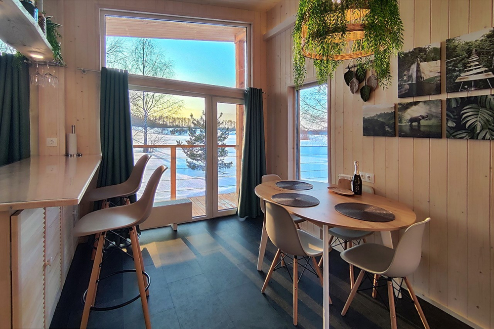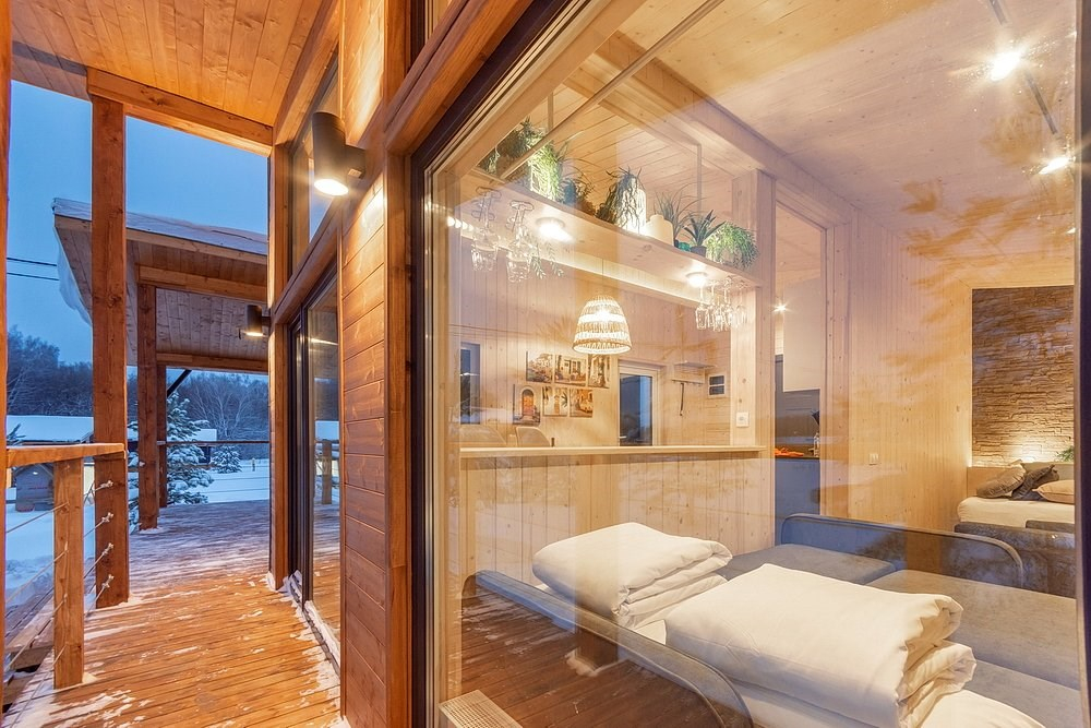 Комплекс окружён густым лесом и находится рядом с заповедной зоной. Здесь можно наслаждаться природой, прогулками по лесным тропам и невероятными видами на озеро и закаты. Тишина, свежий воздух и ощущение уединения создают атмосферу настоящего загородного курорта.