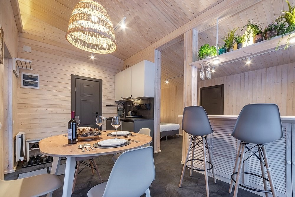 Для домиков Коттедж-студия, Коттедж-студия с доп комнатой, Коттедж с 3 спальнями услуга недоступна.