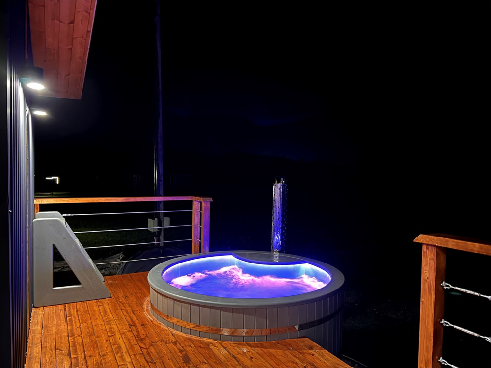 Горячий чан есть около домиков Коттедж с 3 спальнями с купелью.