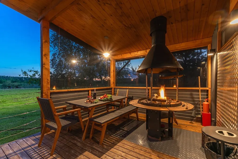 В коттеджах с 3 спальнями есть уличные мангальные зоны и газовые грили на крытых верандах.