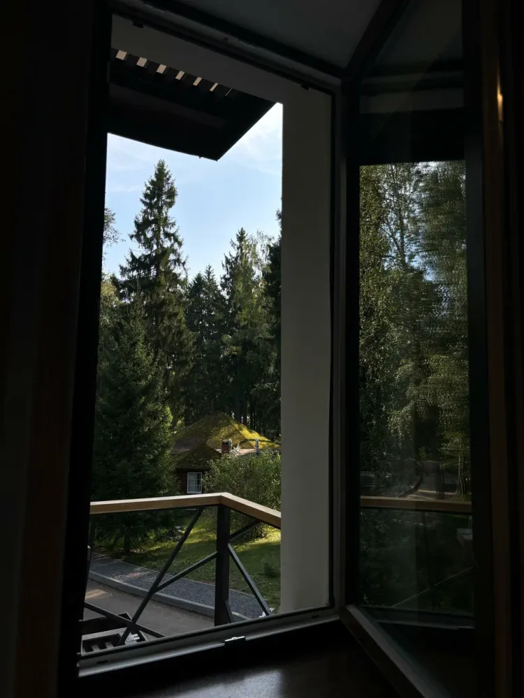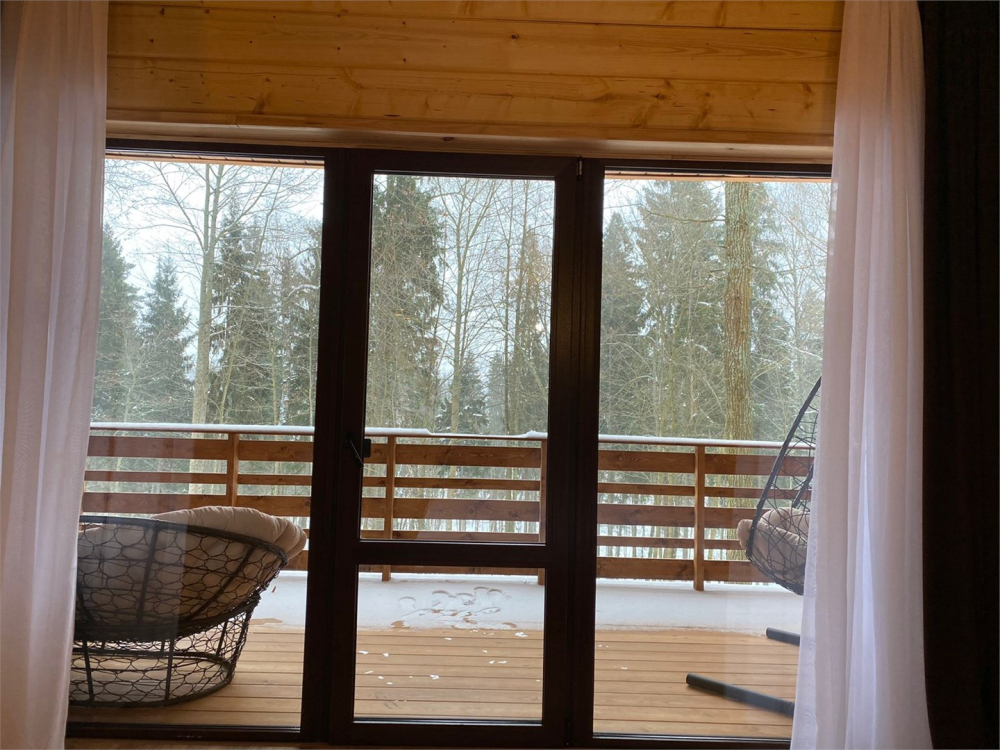 Днём гостей ждут прогулки по живописным лесным тропам, отдых на террасе или у воды, спокойное время в окружении природы.